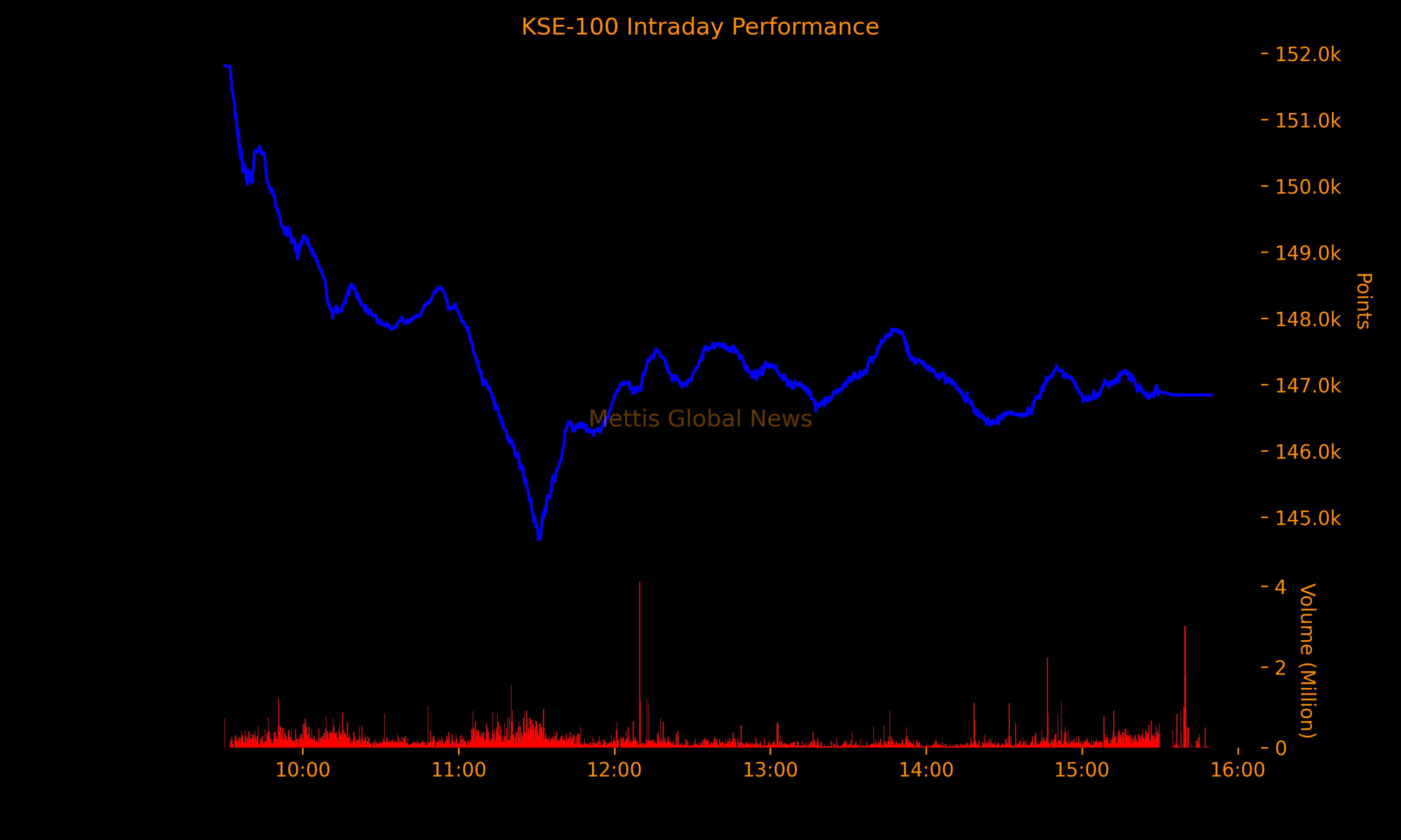 | KSE100 | 146,842.97 308.12M | -3.21% -4864.54 |