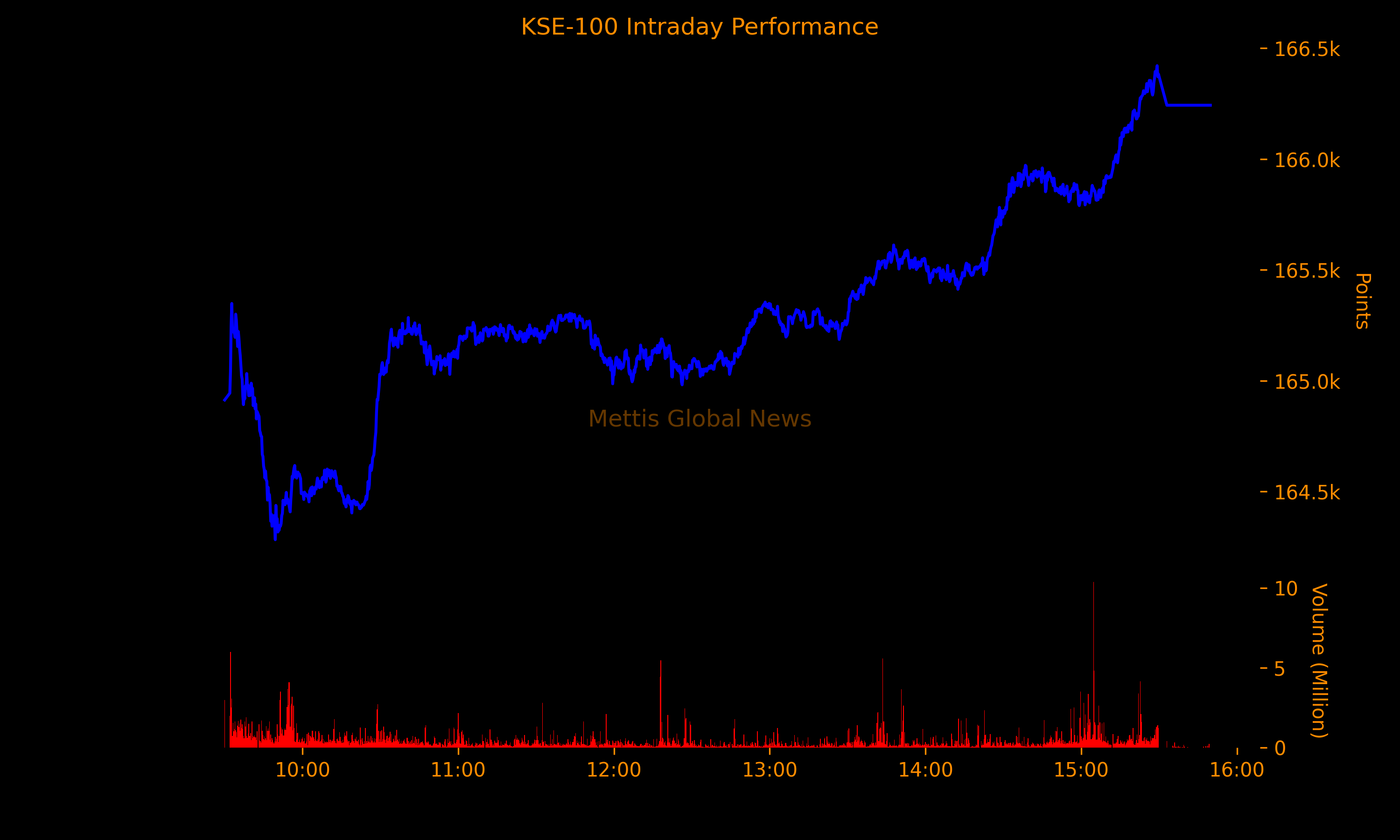 The index remained positive throughout the day showing an intraday high of 166,421.33 (+2,615.12) and a low of 164,281.95 (+475.74) points as Pakistan and Afghanistan have reached an immediate ceasefire agreement following negotiations in Doha, Qatar, with both sides pledging to respect each other’s sovereignty and territorial integrity.