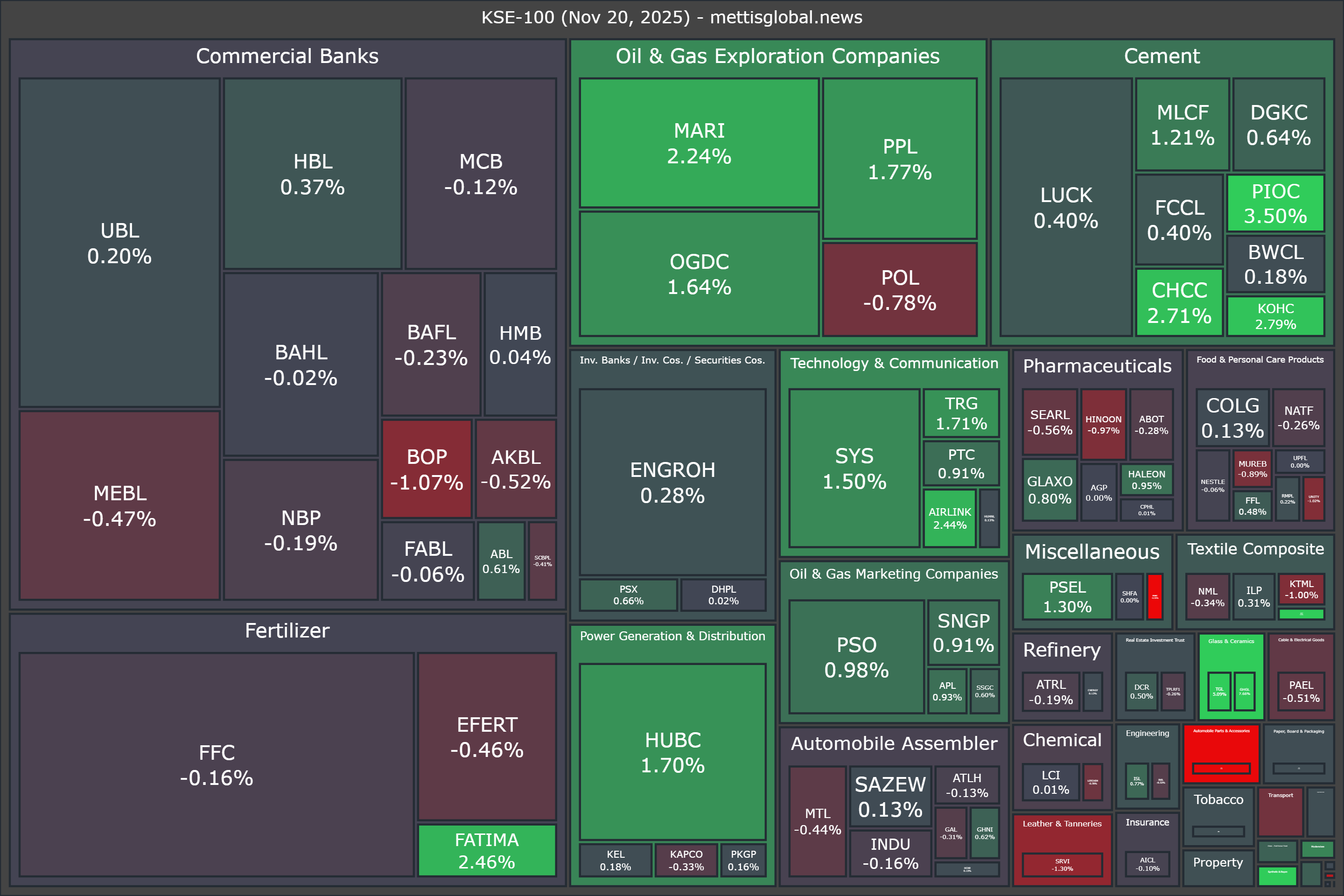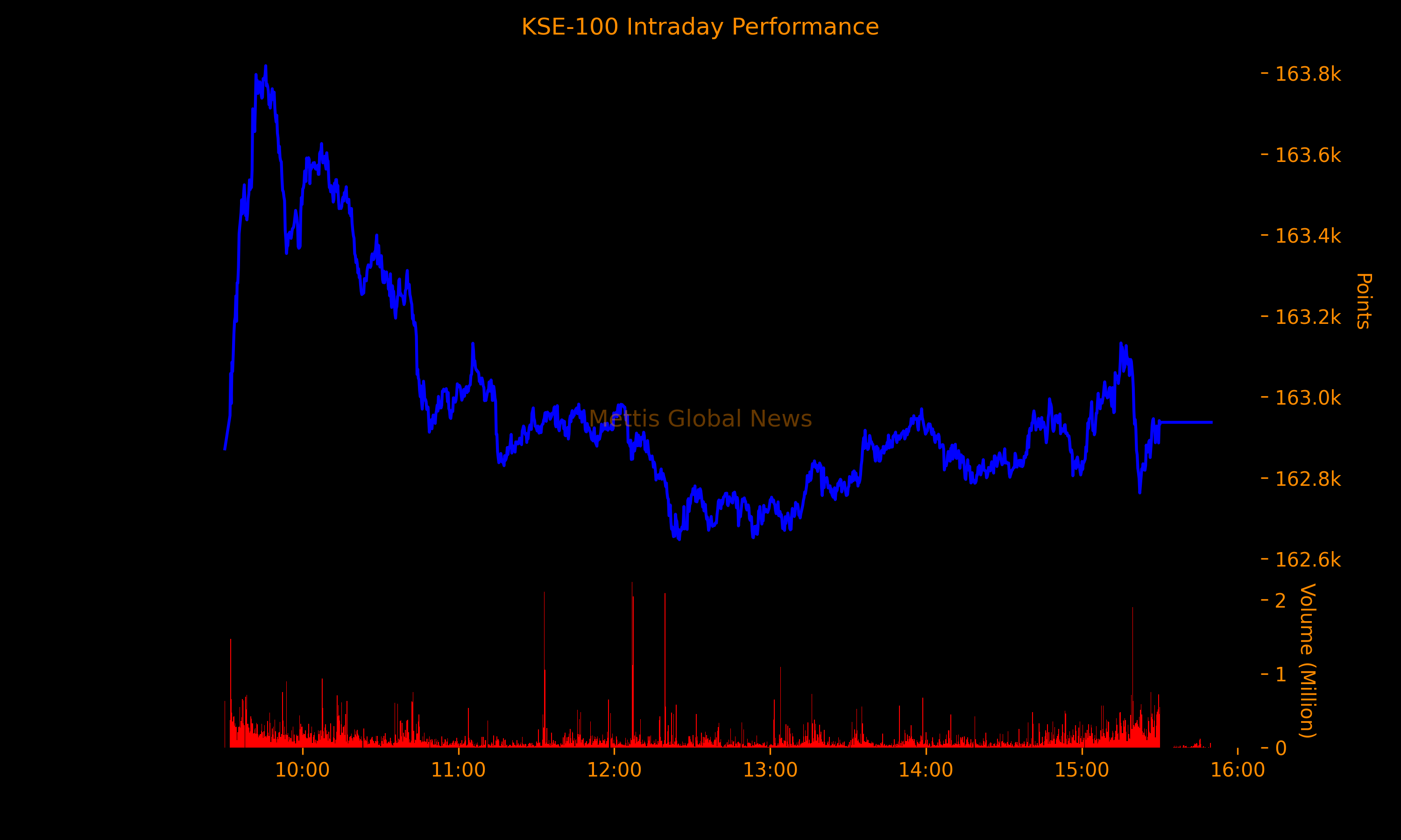November 20, 2025 (MLN): The benchmark KSE-100 Index concluded Thursday's trading session at 162,936.93, showing an increase of 710.66 points or 0.44%.