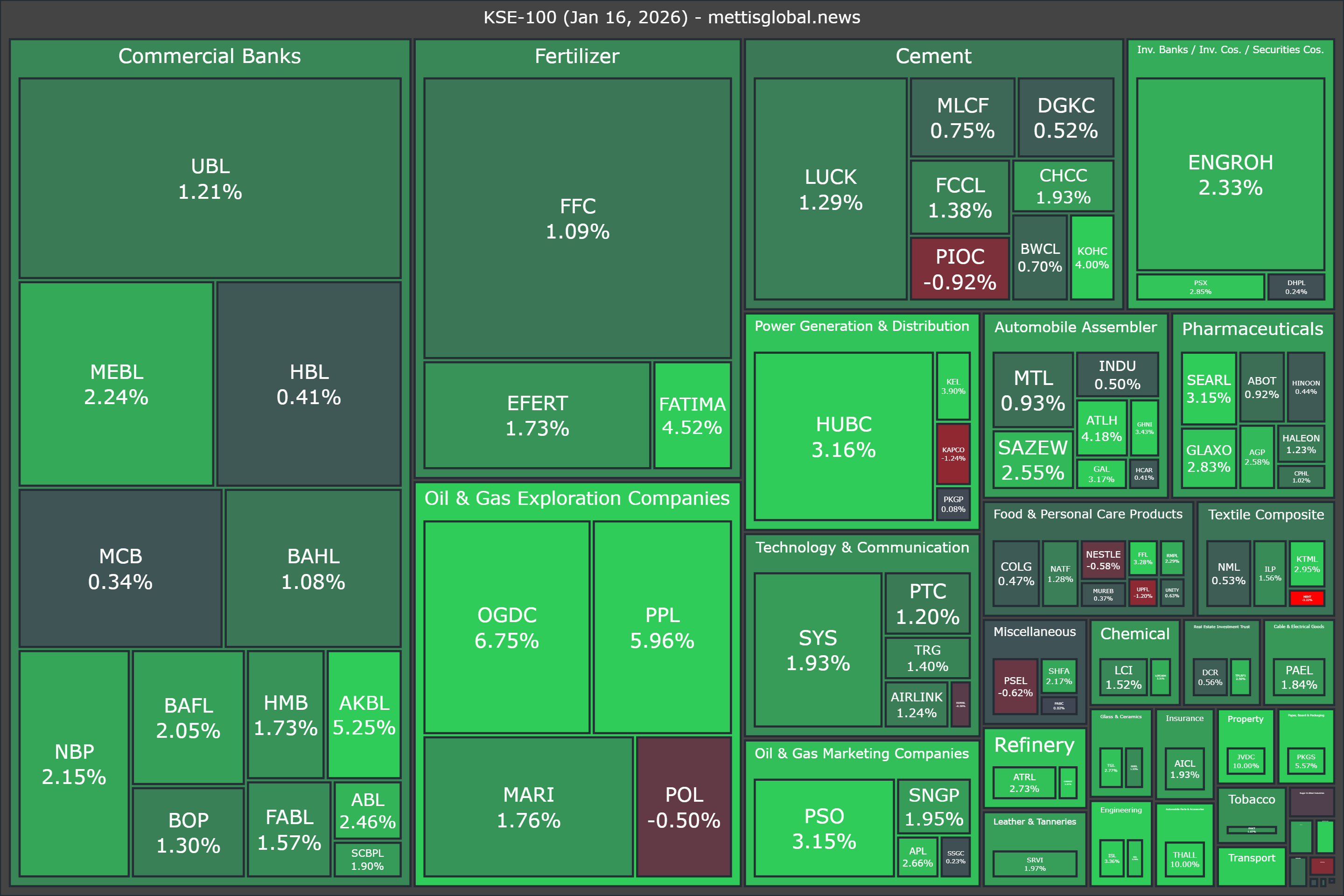 Market mood drew additional support from the federal government’s move to maintain existing fuel prices for the upcoming fortnight beginning January 16, 2026.