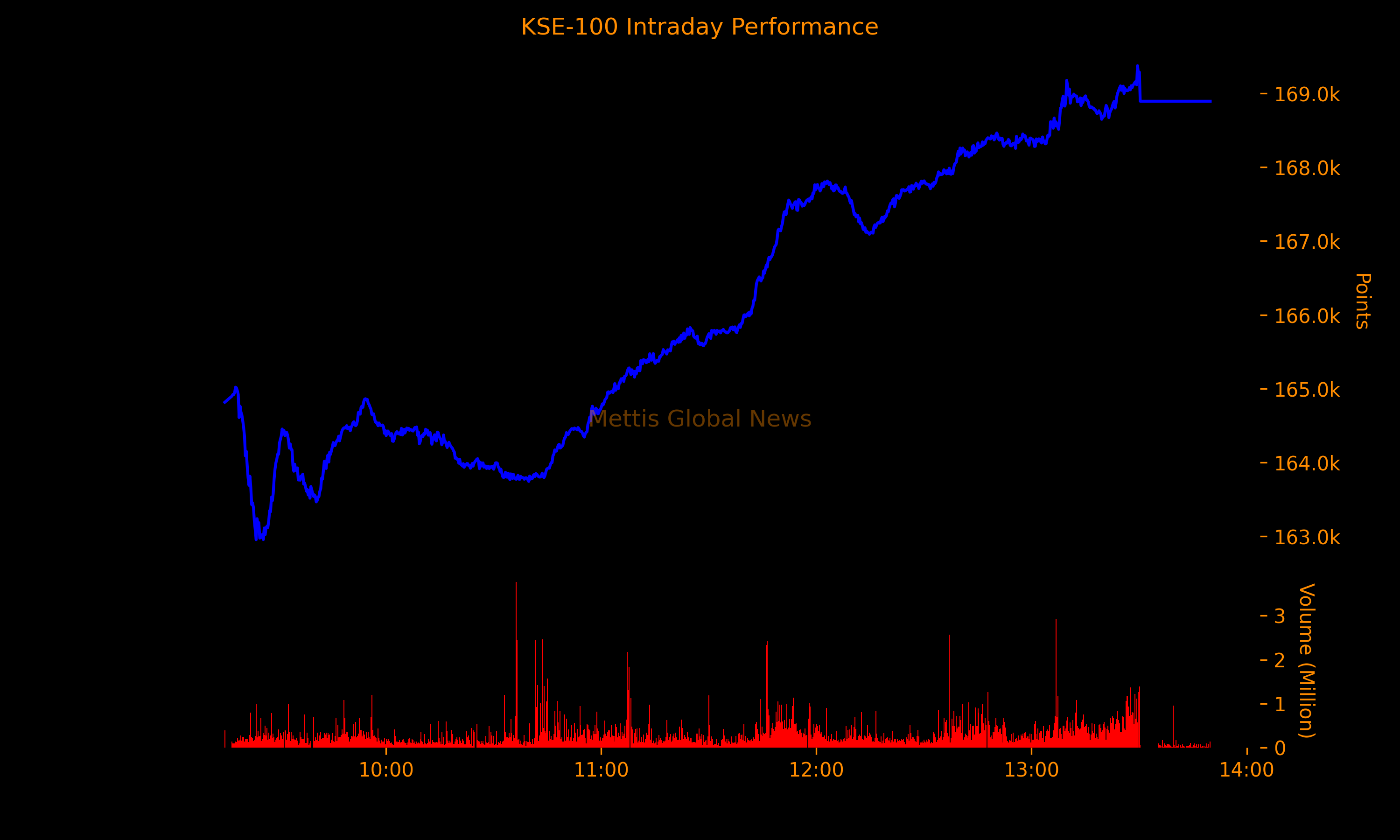 Total trading volume of the KSE-100 Index stood at 355.32 million shares.