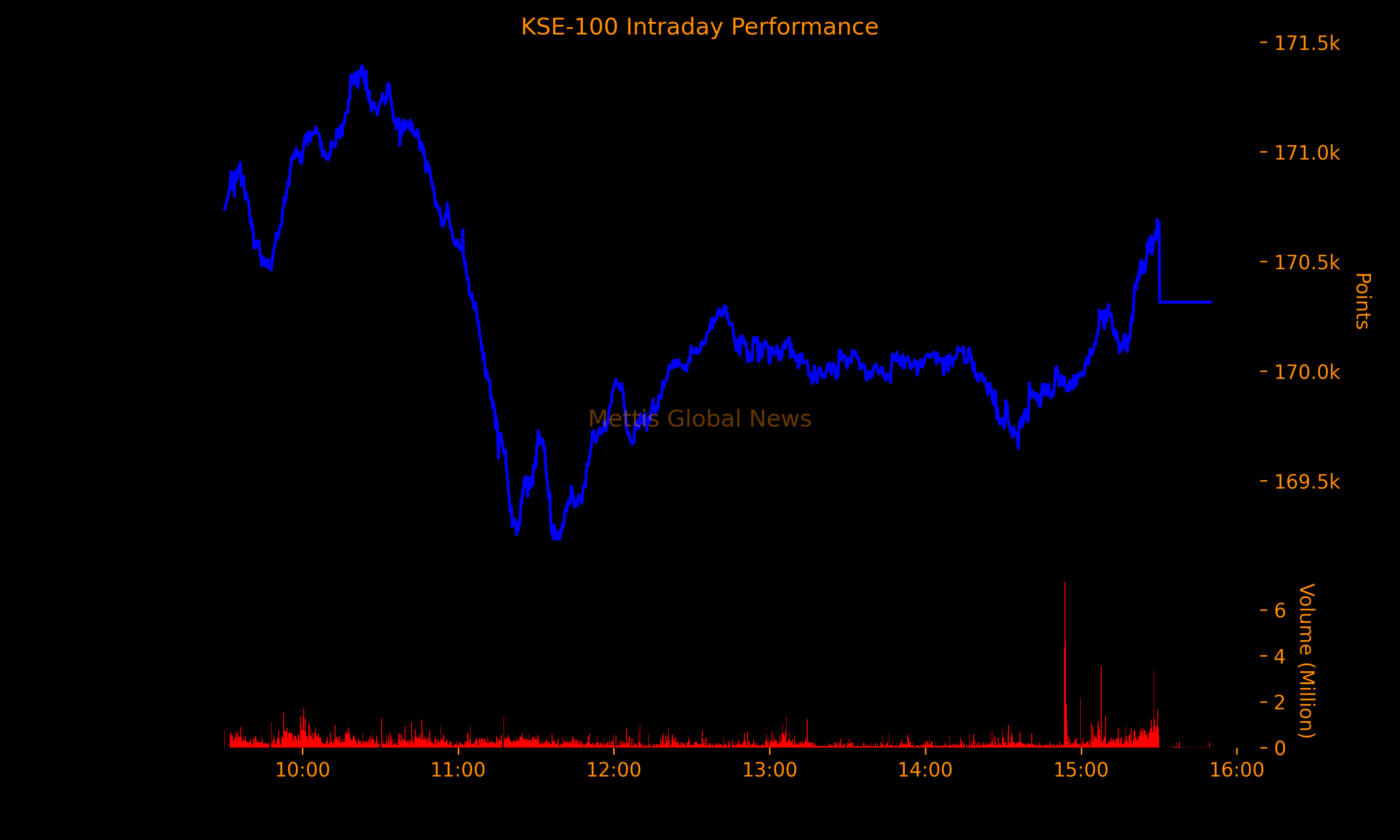 The total volume of the KSE-100 Index was 435.47 million shares.