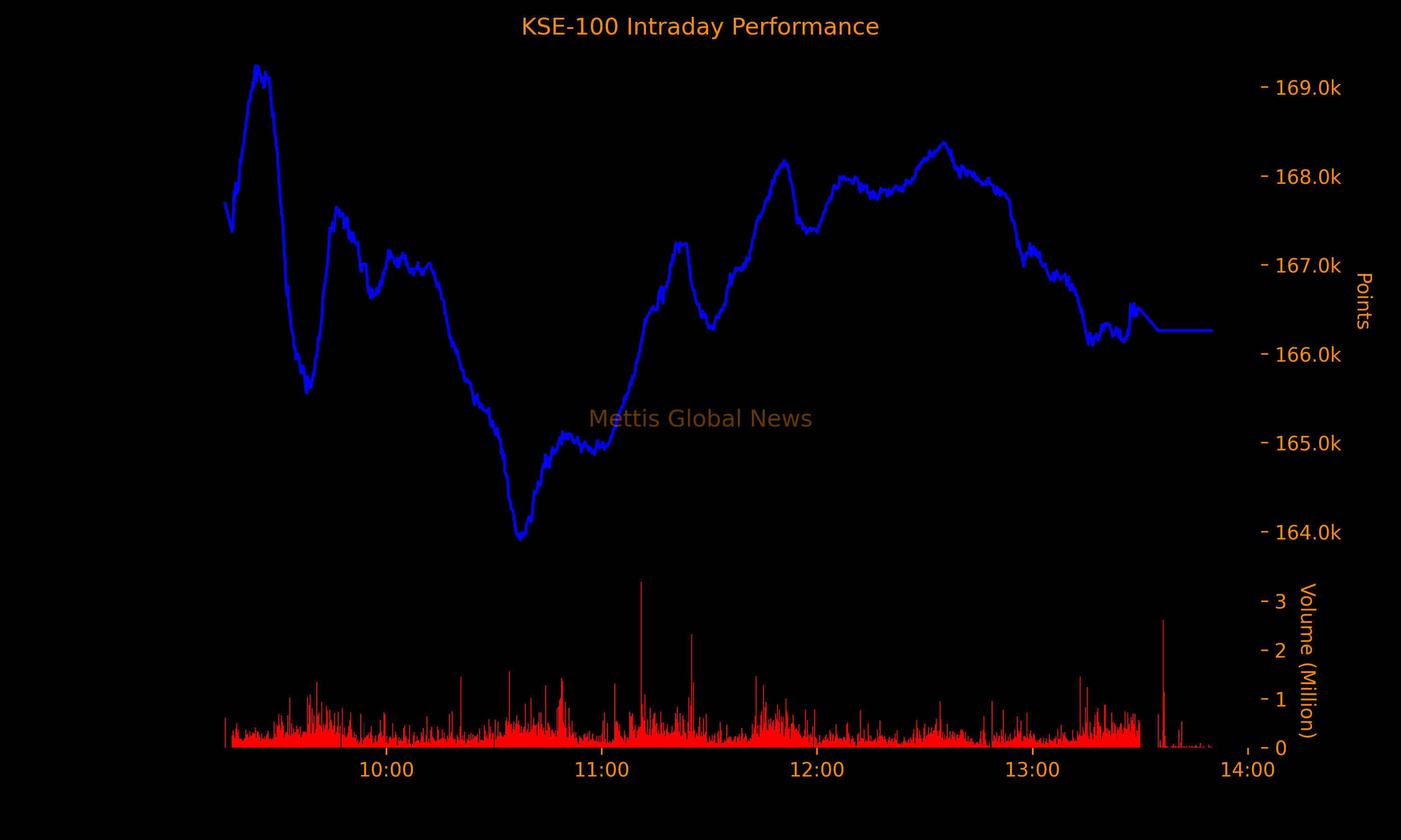 The benchmark index closed at 166,258.54, posting a decline of 1,432.54 points or 0.85%.