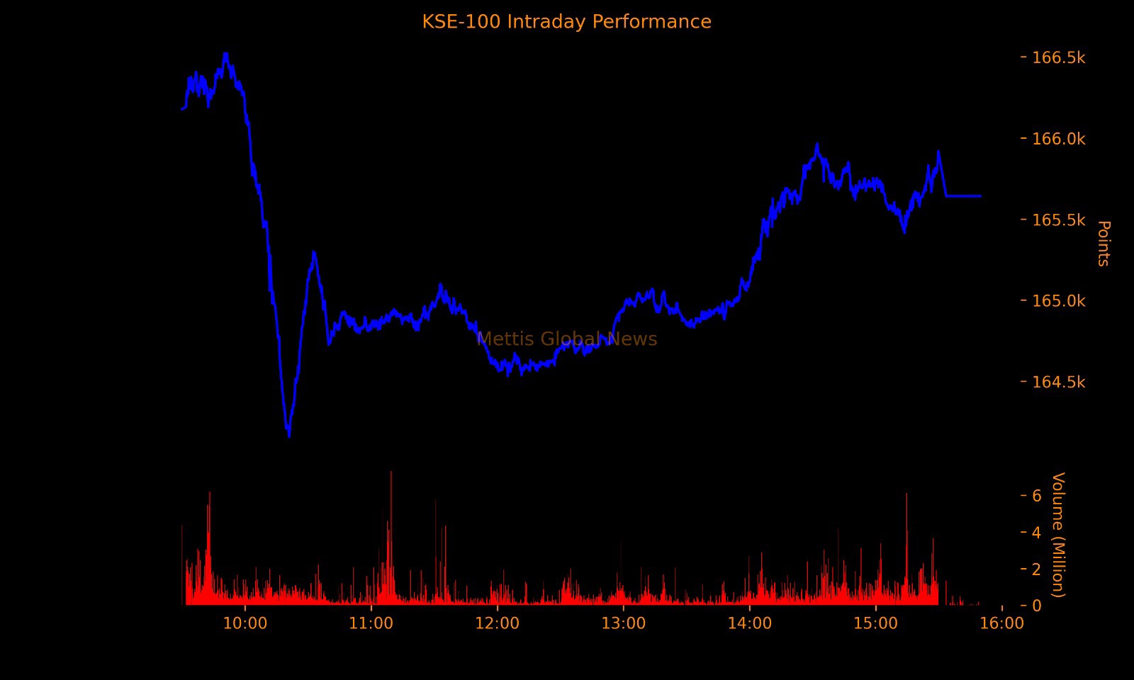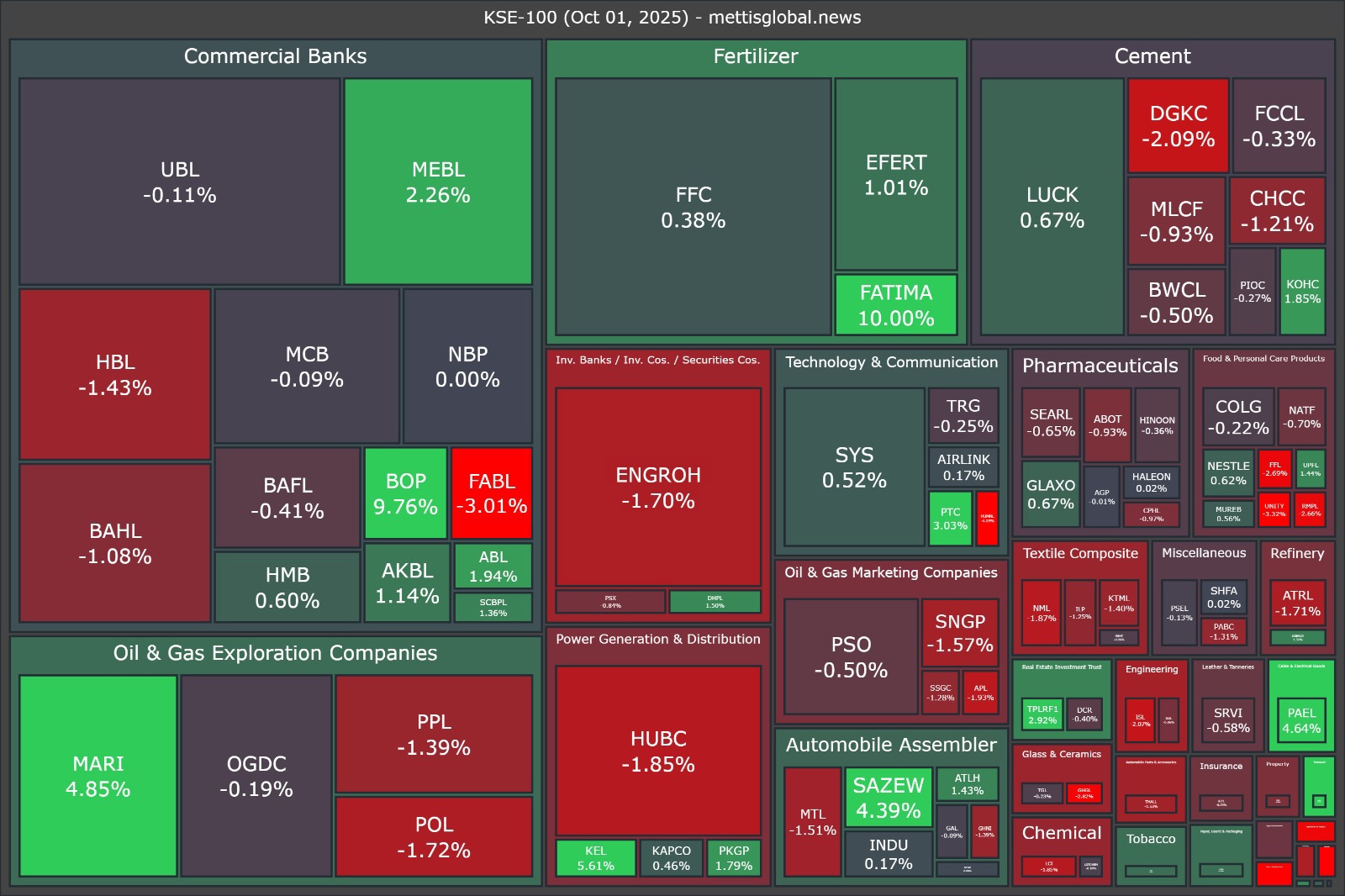 October 01, 2025 (MLN): The benchmark KSE-100 Index concluded Wednesday's trading session at 165,640.33, showing an increase of 146.75 points or 0.09%.