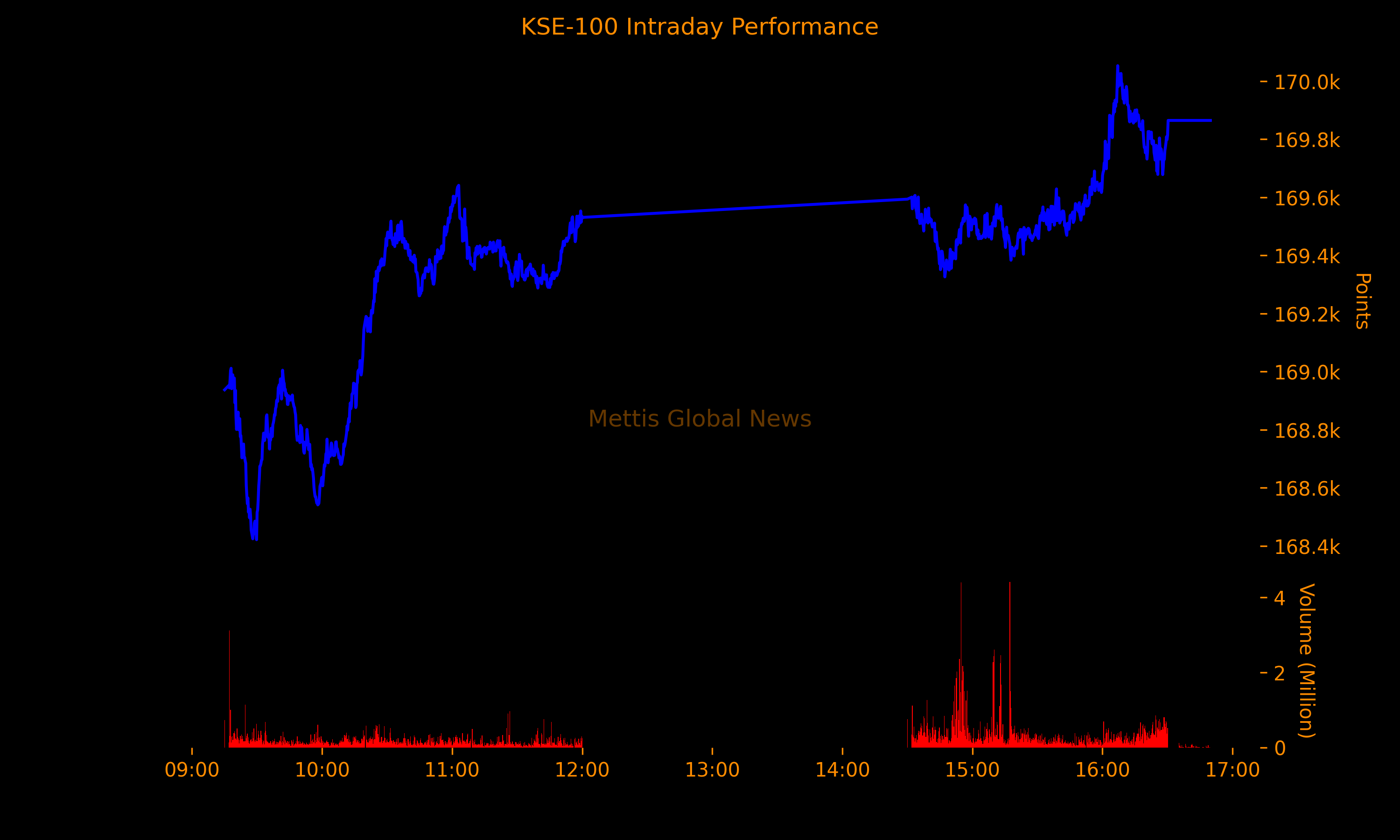 | KSE100 | 169,864.53 309.70M | 0.77% 1289.83 |