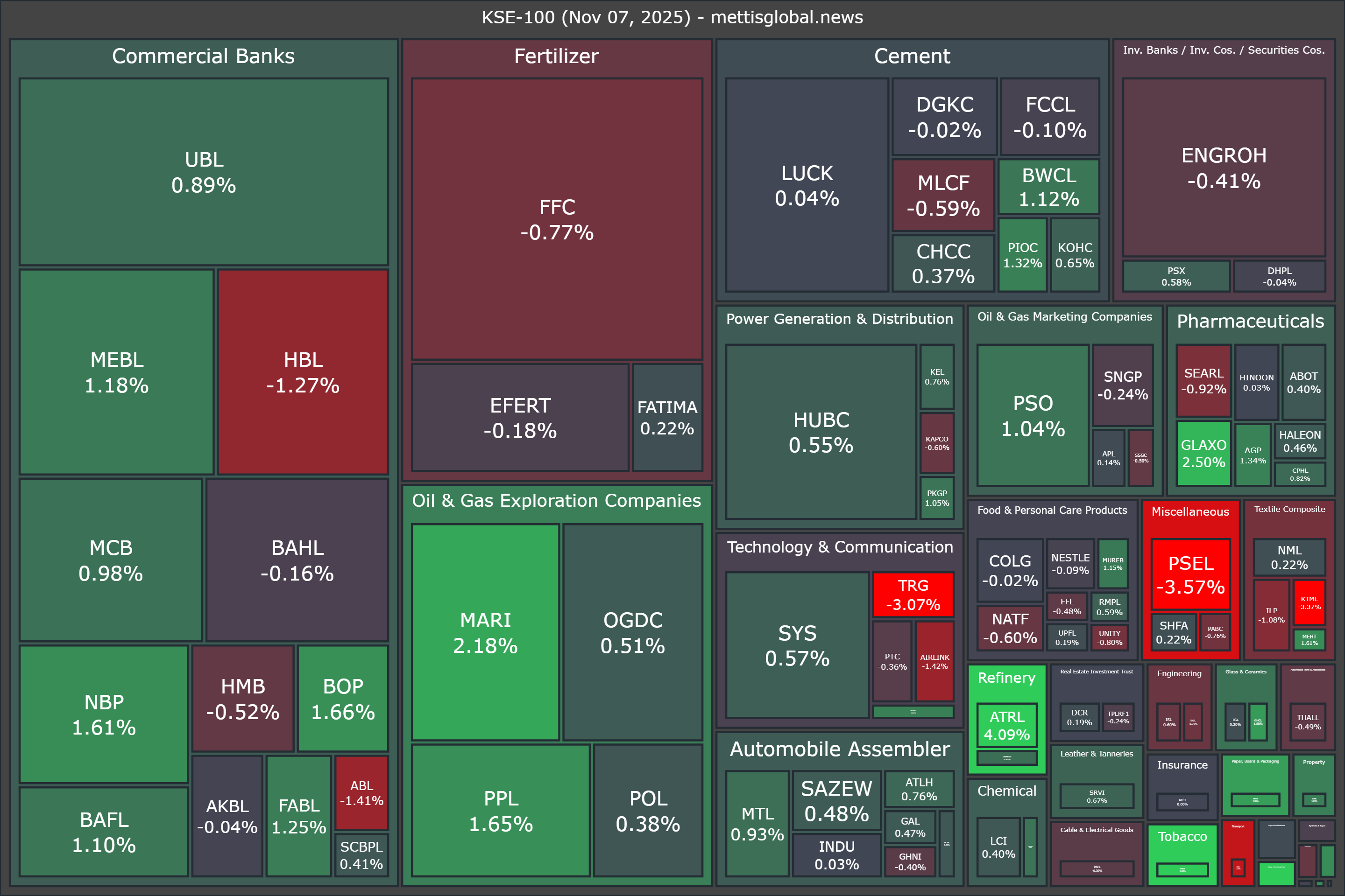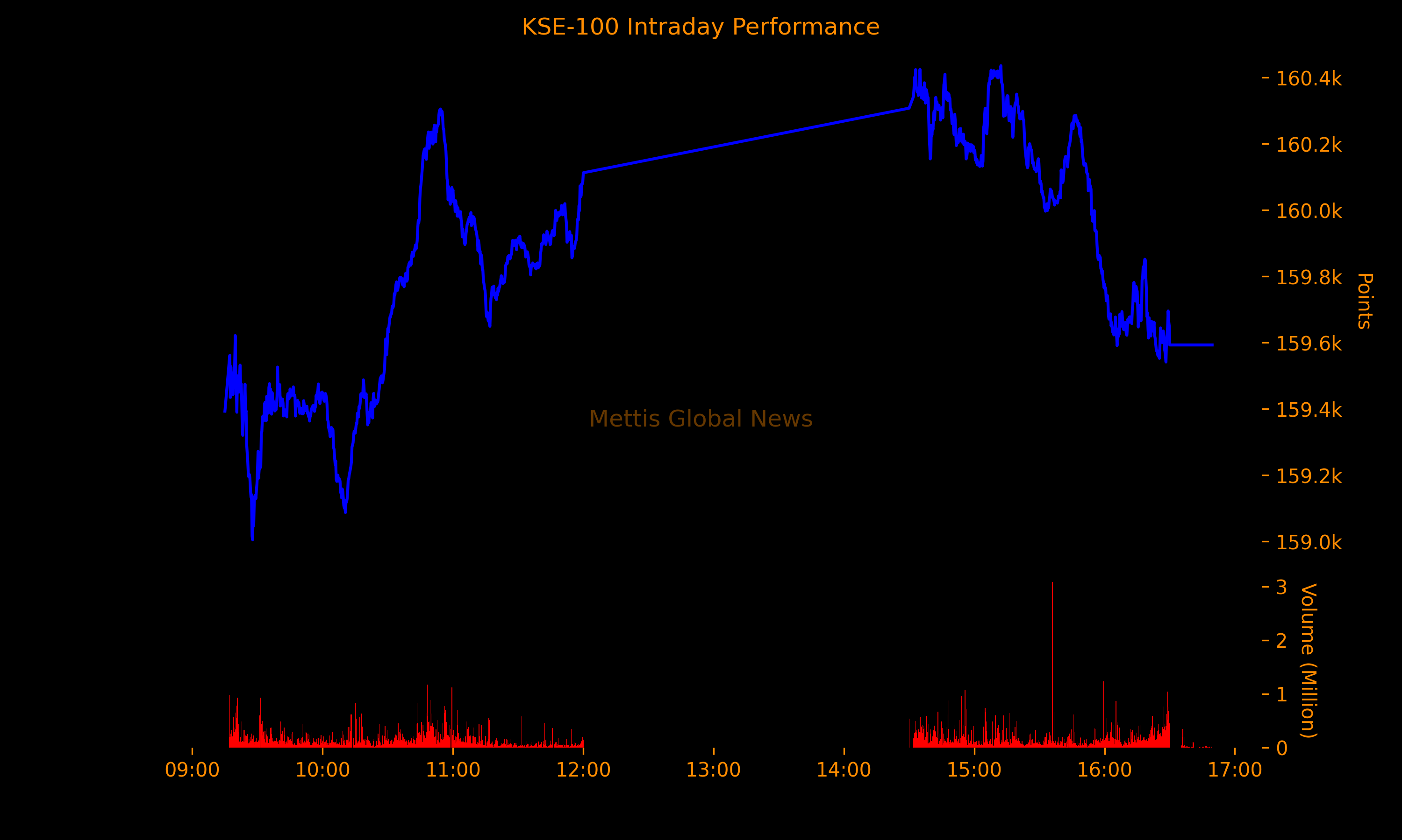 November 07, 2025 (MLN): The benchmark KSE-100 Index concluded Friday's trading session at 159,592.90, showing an increase of 496.12 points or 0.31%.