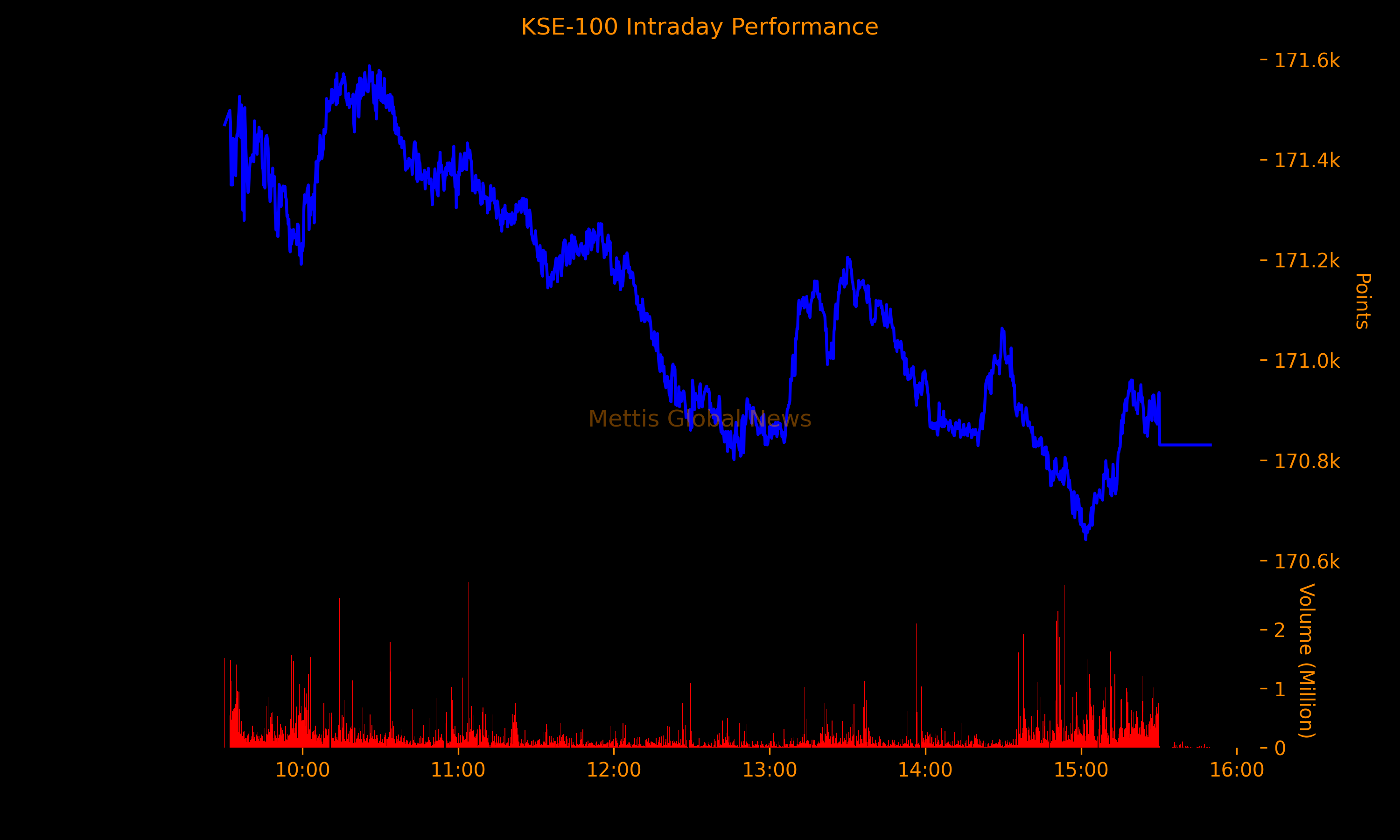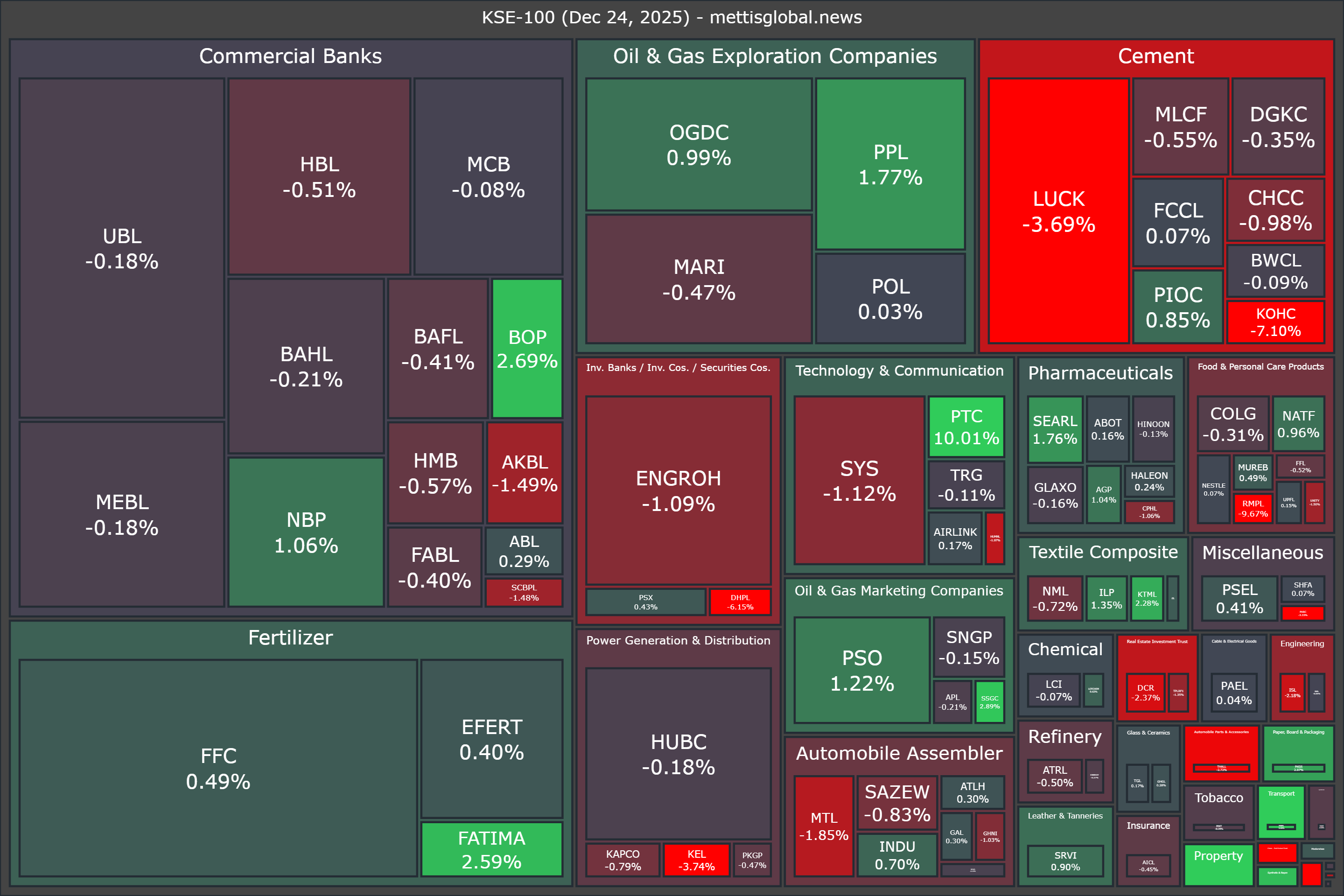 December 24, 2025 (MLN): The benchmark KSE-100 Index concluded Wednesday's trading session at 170,830.22, showing a decrease of 243.51 points or 0.14%.