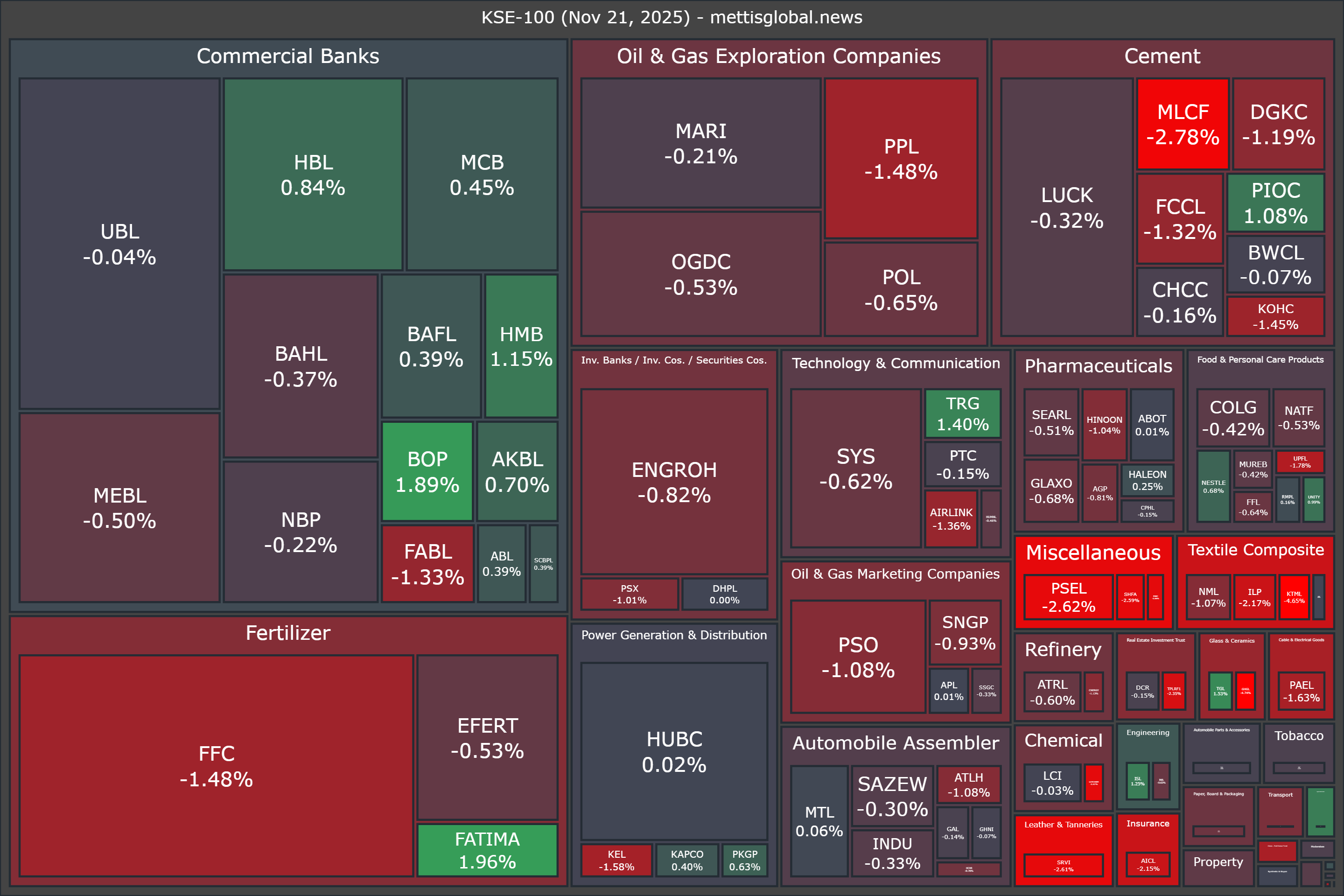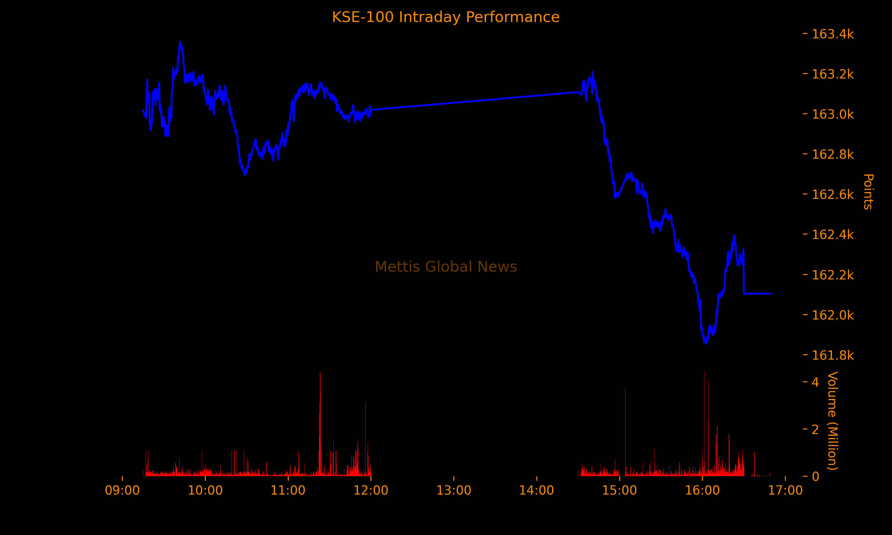 November 21, 2025 (MLN): The benchmark KSE-100 Index concluded Friday's trading session at 162,102.92, showing a decrease of 834.01 points or 0.51%.