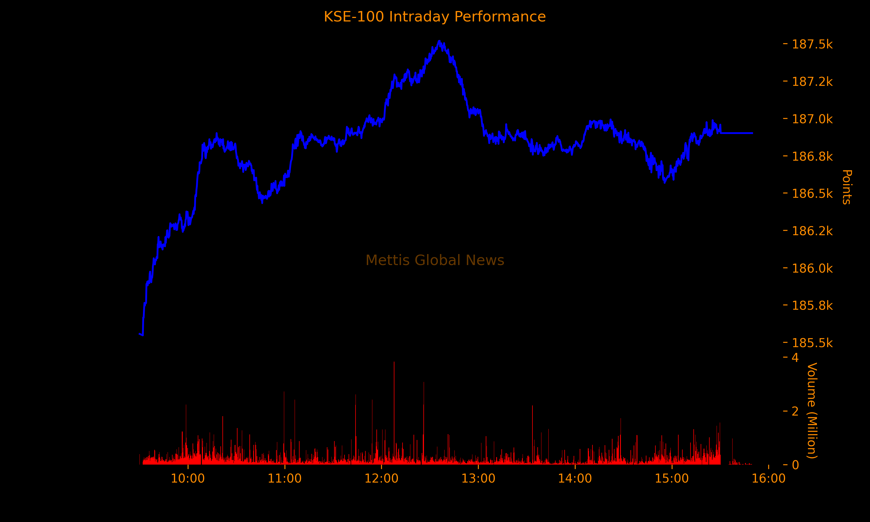 | KSE100 | 186,900.74 390.19M | 1.00% 1842.91 |