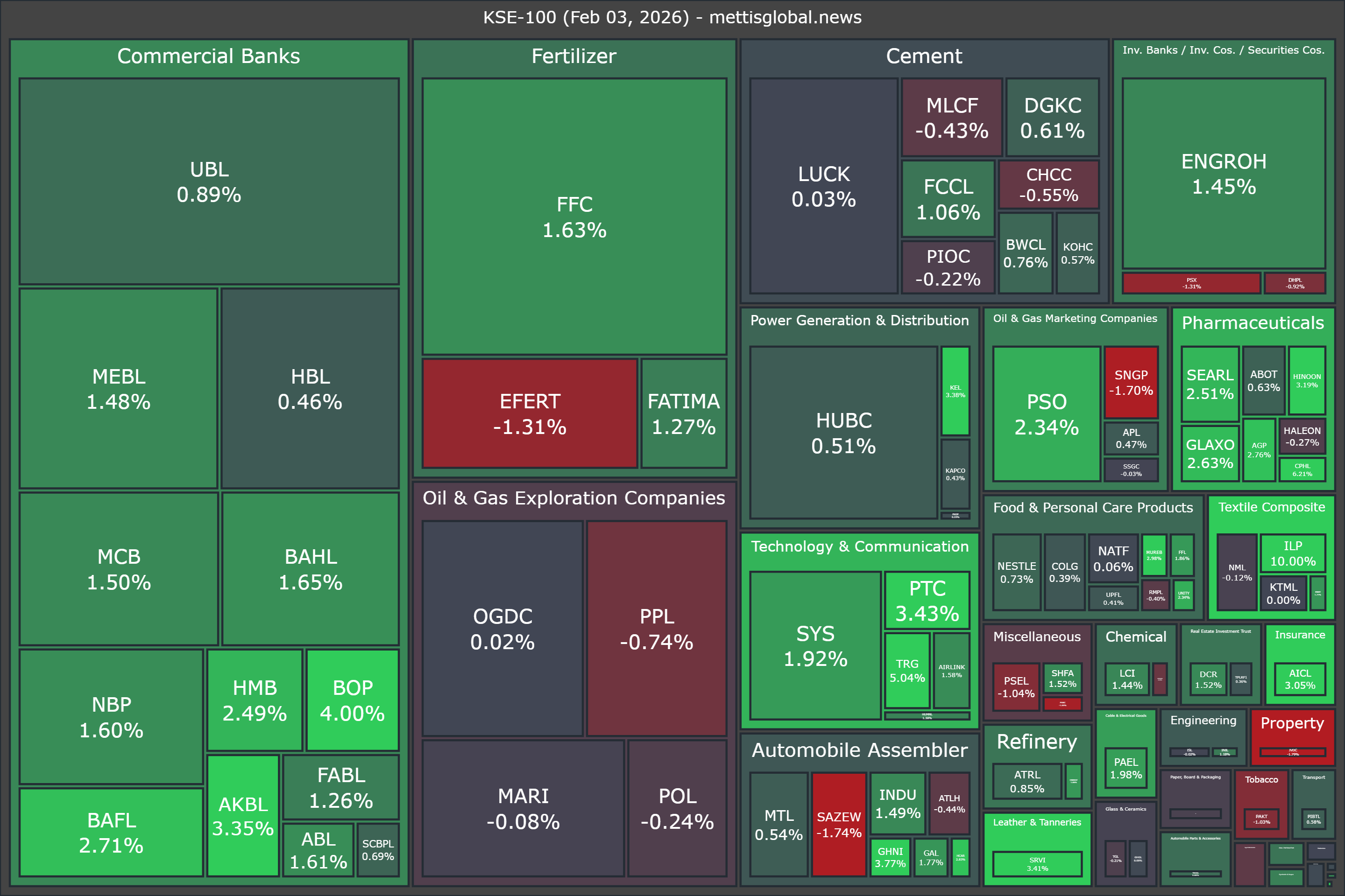 Sector-wise, KSE-100 Index was supported by Commercial Banks (+814.47pts), Fertilizer (+233.78pts), Technology & Communication (+193.39pts), Pharmaceuticals (+117.43pts), and Inv. Banks / Inv. Cos. / Securities Cos. (+113.23pts).