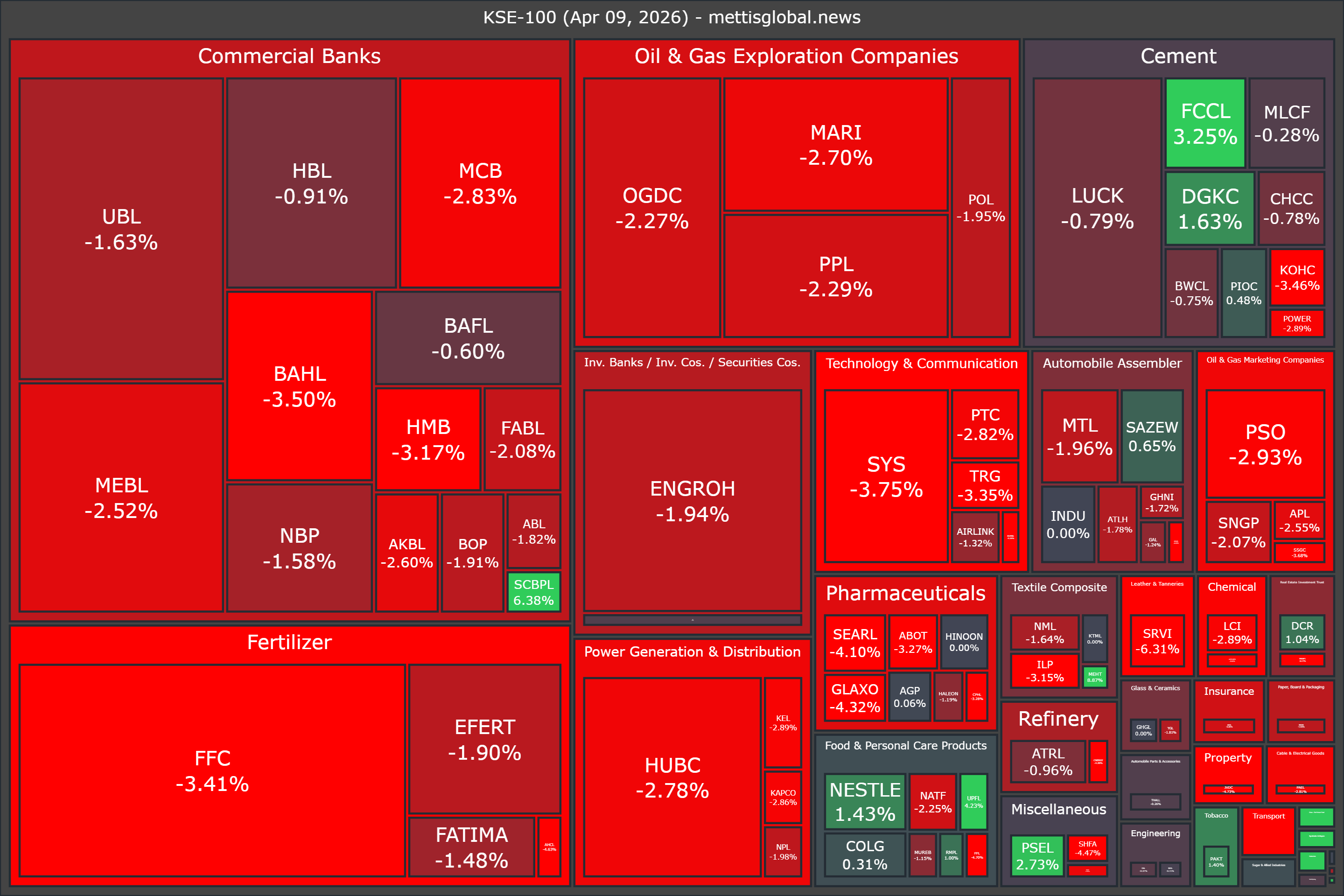 In terms of index-point contribution, the decline was driven by FFC (-569.84 points), HUBC (-213.26 points), MEBL (-212.79 points), ENGROH (-195.18 points), and SYS (-184.46 points).