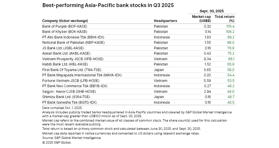 banks led the Asia-Pacific region in stock performance during the third