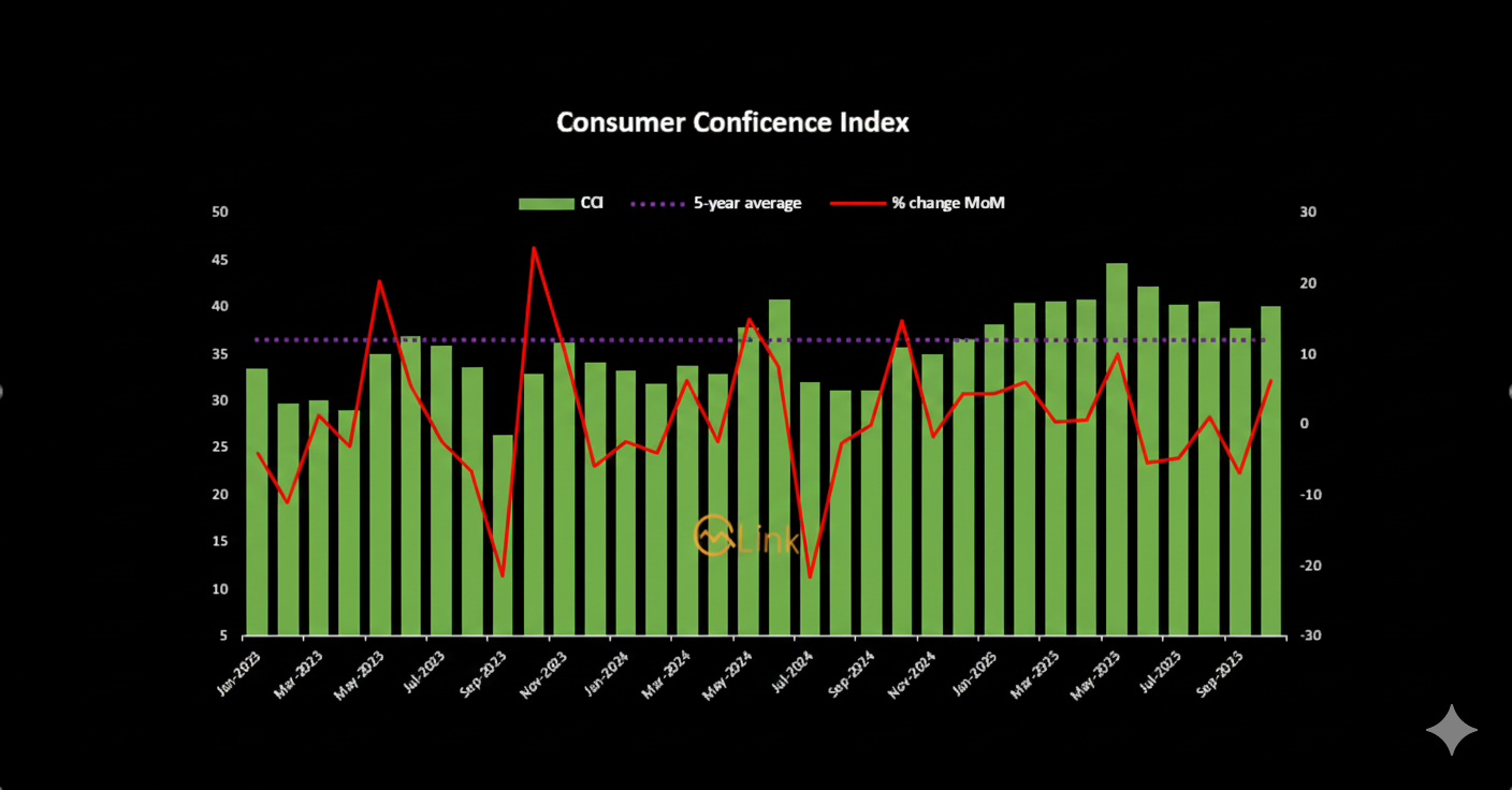 October 28, 2025 (MLN): The consumer confidence Index (CCI) in Pakistan increased to 40 points