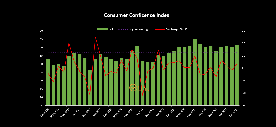 Pakistan consumer confidence rises to 41.6 points in Jan 2026