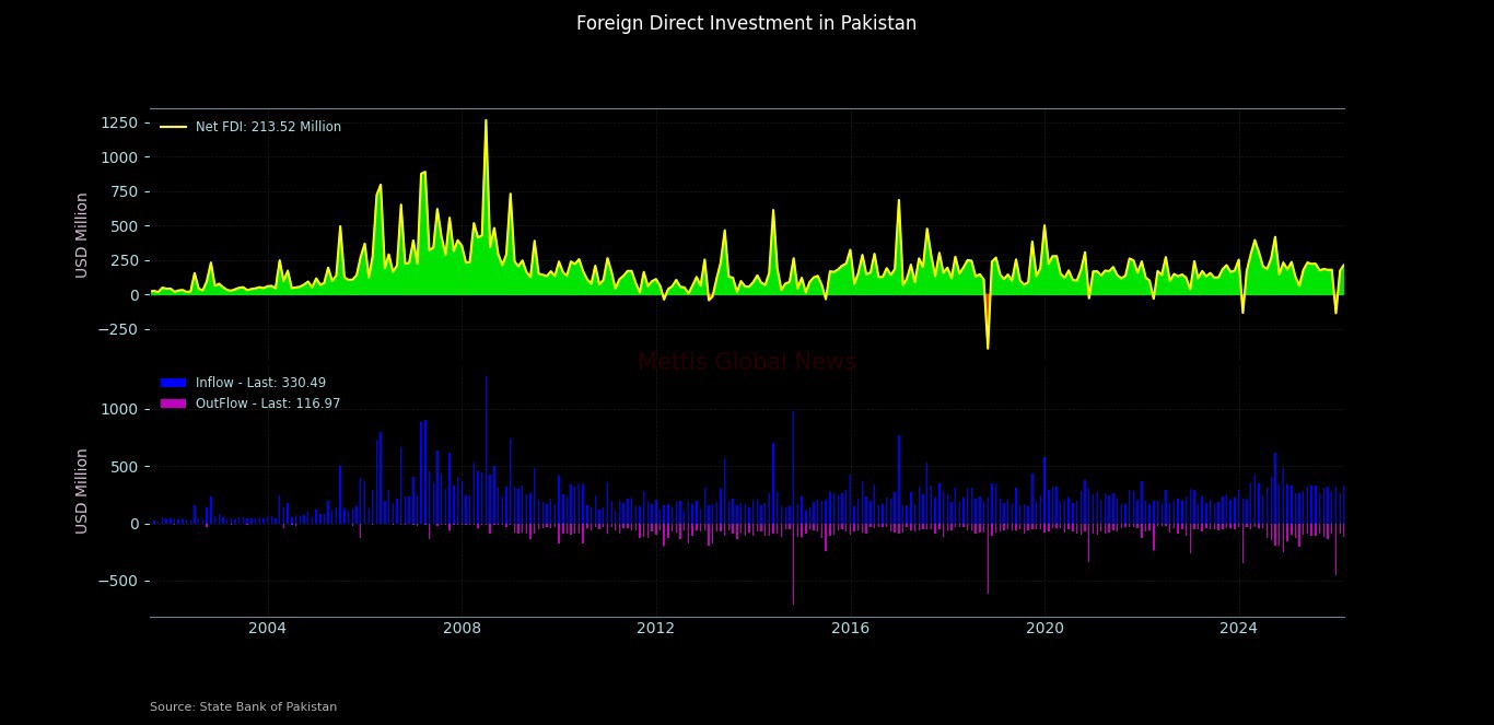 Cumulatively in 8MFY26, the country fetched a FDI of $1,194.9m against the $1,793.4m attracted in the same period last fiscal year.