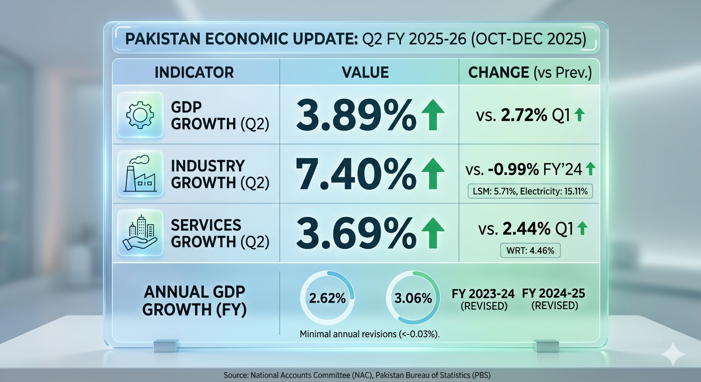 Pakistan’s economy grows 3.89% in Q2 FY26