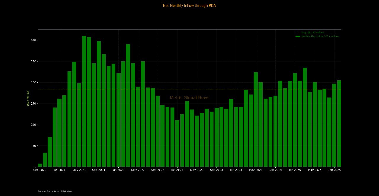 Nov 12, 2025 (MLN): Total inflows into Roshan Digital Accounts (RDA) during October, 2025 stood at $205m, bringing the total cumulative inflows into RDA to $11,313m.