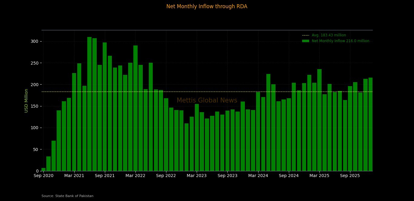 February 18, 2026 (MLN): Total inflows into Roshan Digital Accounts (RDA) during January 2026 stood at $216 milliom, bringing cumulative inflows into RDA to $11.923 billion.