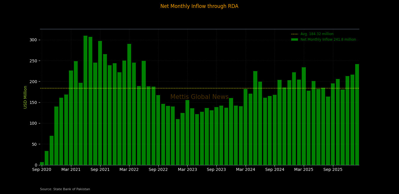 The highest monthly inflow into RDA was recorded in June 2021, when inflows of $310 million were received.
