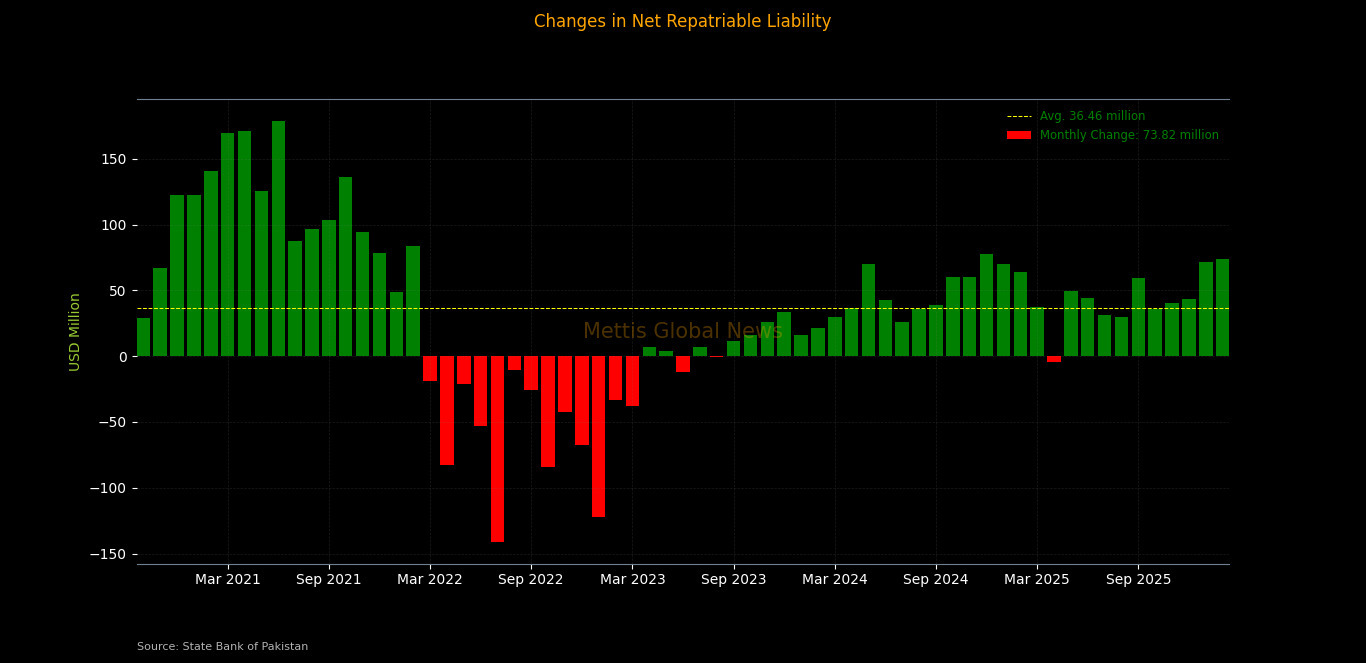 However, according to data released by the SBP, the amount repatriated and locally utilized during the month was $167.98 million, showing that the Net Repatriable Liability (NRL) of RDA increased by $73.82 million in February.