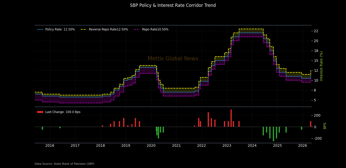 April 27, 2026 (MLN): The Monetary Policy Committee has decided to increase the policy rate by 100 bps to 11.5% in its meeting held on April 27, 2026.