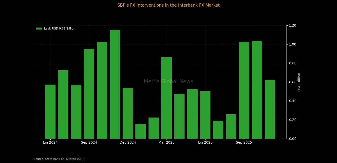 February 23, 2026 (MLN): The State Bank of Pakistan (SBP) purchased $620 million from the interbank foreign exchange market in November 2025, according to official data released by its Domestic Markets & Monetary Management Department.