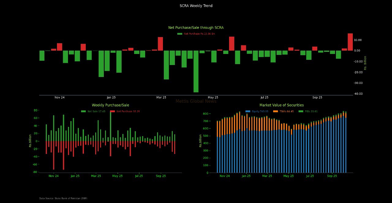According to data released by the State Bank of Pakistan (SBP), the week saw net buying of securities amounting to Rs15.86bn.