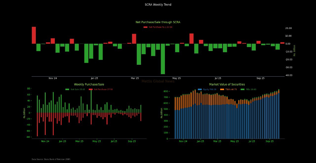 October 09, 2025 (MLN): The SCRA balance increased by Rs725.50 million during the week ending October 03, 2025, to close at Rs29.68 billion.