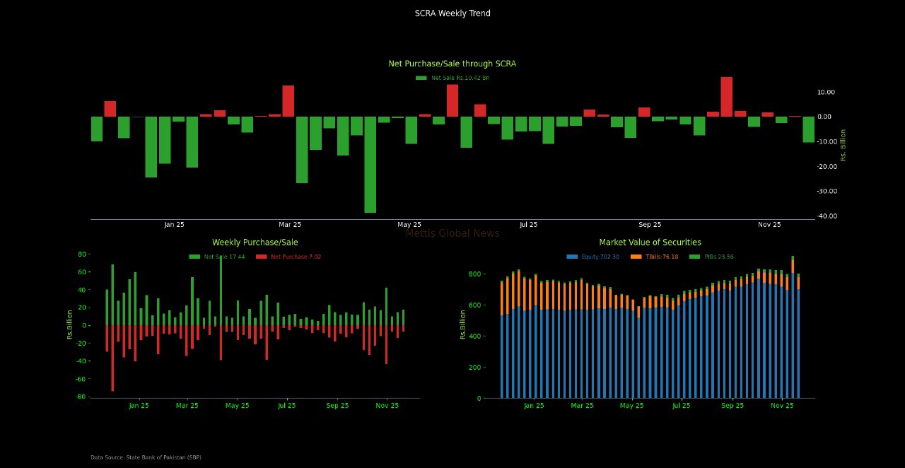 November 27, 2025 (MLN):The SCRA balance increased by Rs.418.29m during the week ending Nov 21, 2025 to close at Rs29.86 billion.