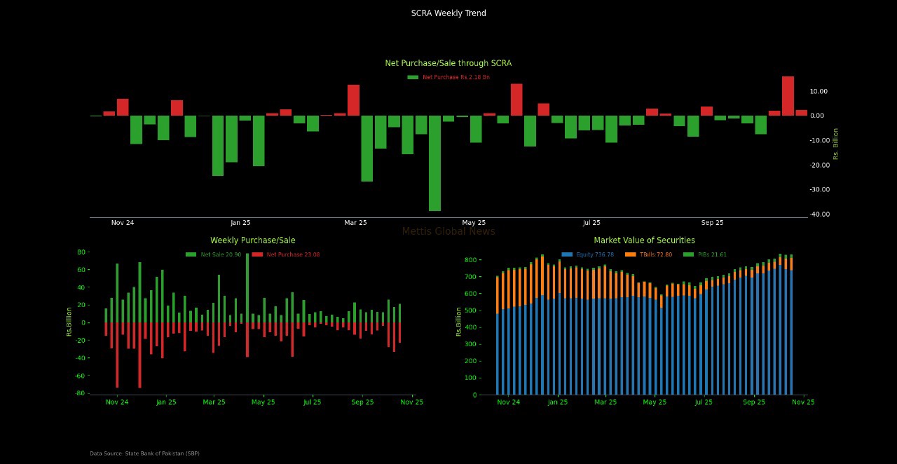 October 24, 2025 (MLN): The SCRA balance decreased by Rs1.12bn during the week ending Oct 17, 2025 to close at Rs29.39bn.