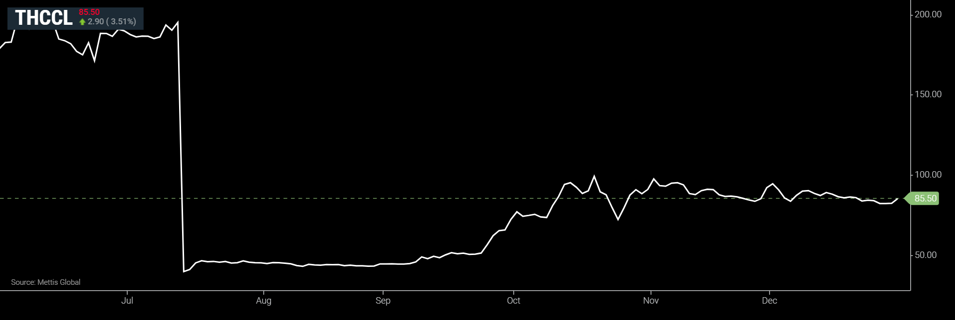 At the time of writing, the company’s share price stood at Rs 84.70, down Rs 2.10, or 2.54%.