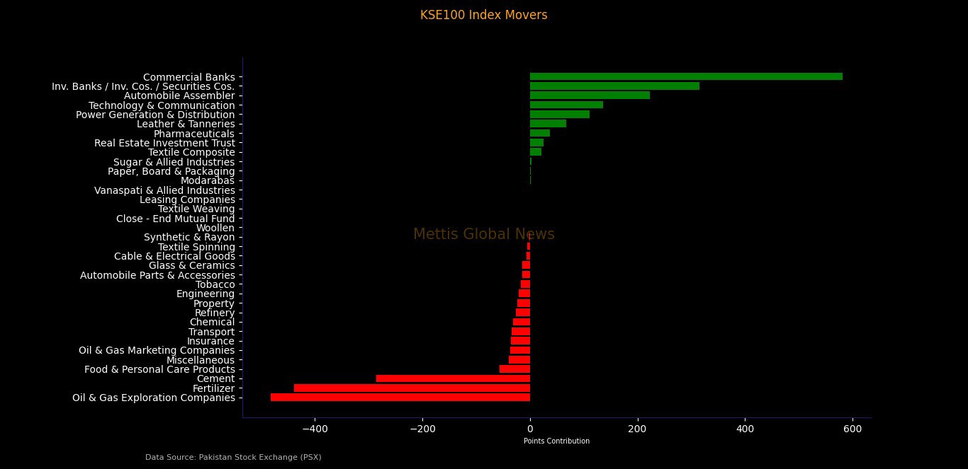 On the positive side, Commercial Banks provided the strongest support, adding 582 points to the index.