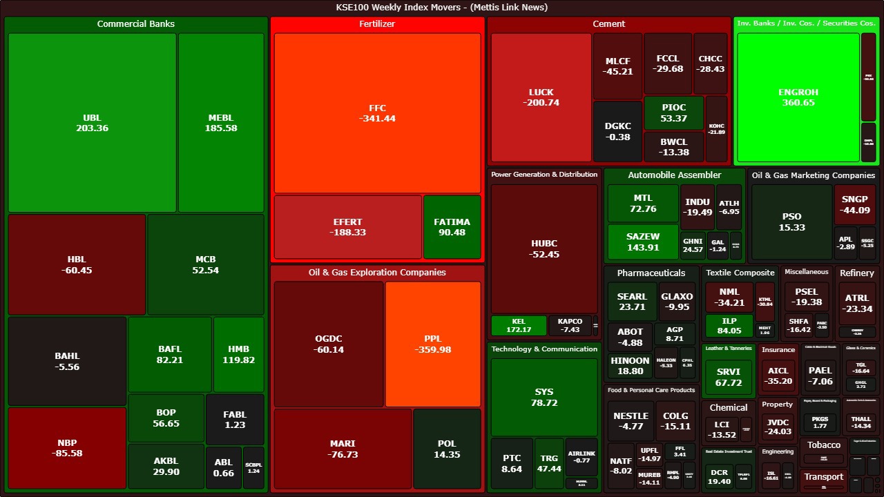 Bank of Pakistan (NBP) (-86 points), Mari Petroleum (MARI) (-77