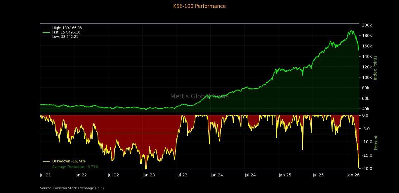 benchmark KSE-100 Index closed at 157,496.10, compared to 168,062.17
