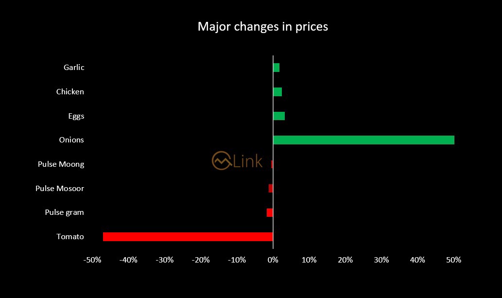 a sharp rise in onion prices, which soared 59.54%, followed by eggs