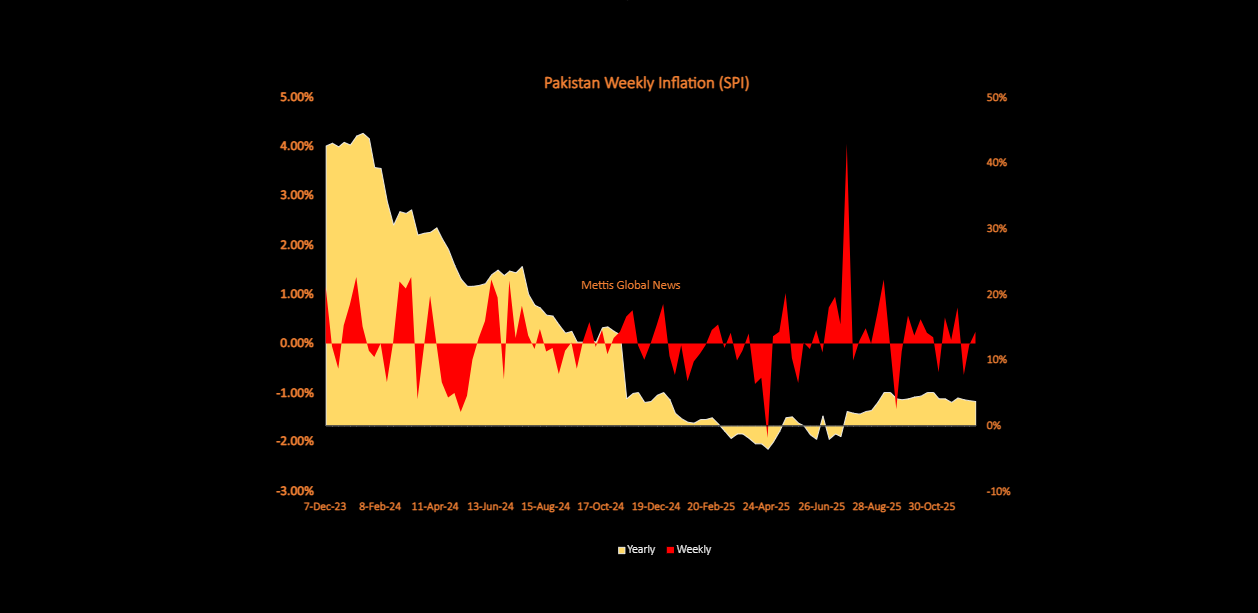December 19, 2025 (MLN): Pakistan's short-term inflation increased by 0.24% compared to the previous week, while it rose by 3.75% compared to the same period last year, the Pakistan Bureau of Statistics (PBS) reported on Friday.