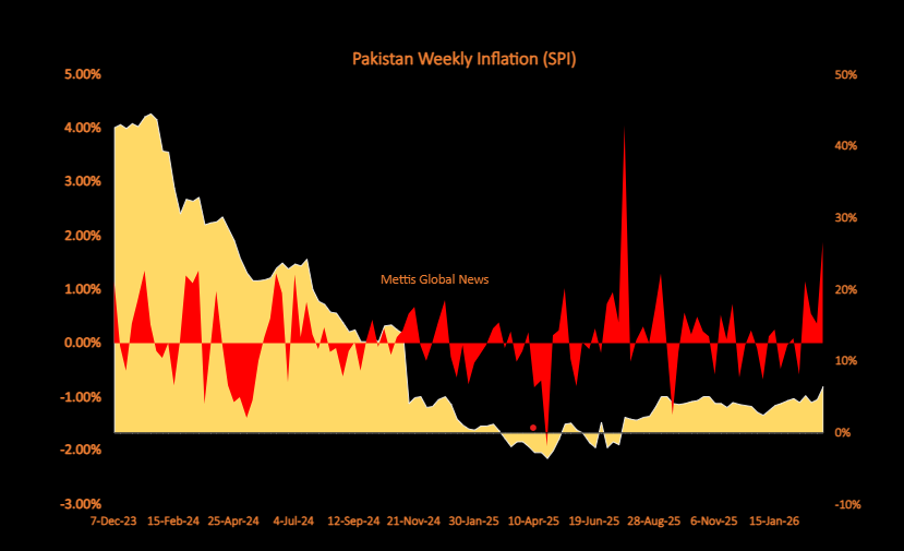 March 19, 2026 (MLN): Pakistan's Sensitive Price Indicator (SPI) rose by 0.21% in the week ended March 18, 2026, according to data released by the Pakistan Bureau of Statistics (PBS).
