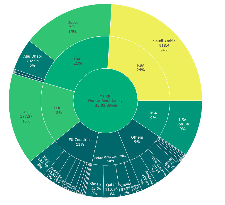 as the largest contributor to workers' remittances in March 2026, with inflows