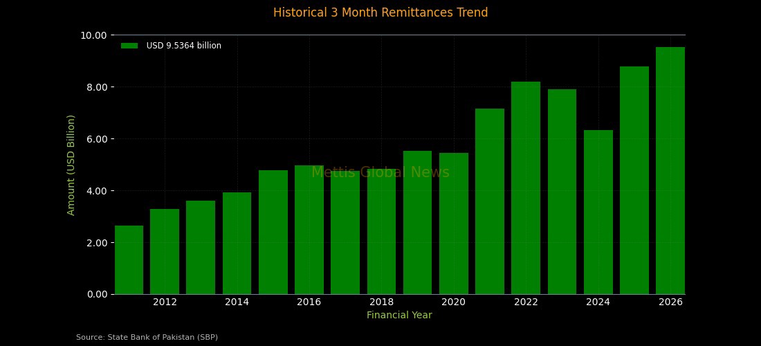 This brings total remittances for 3MFY25 (July–September) to $9.53 billion, up 8.4% from $8.8 billion in the same period of last fiscal year (3MFY24).