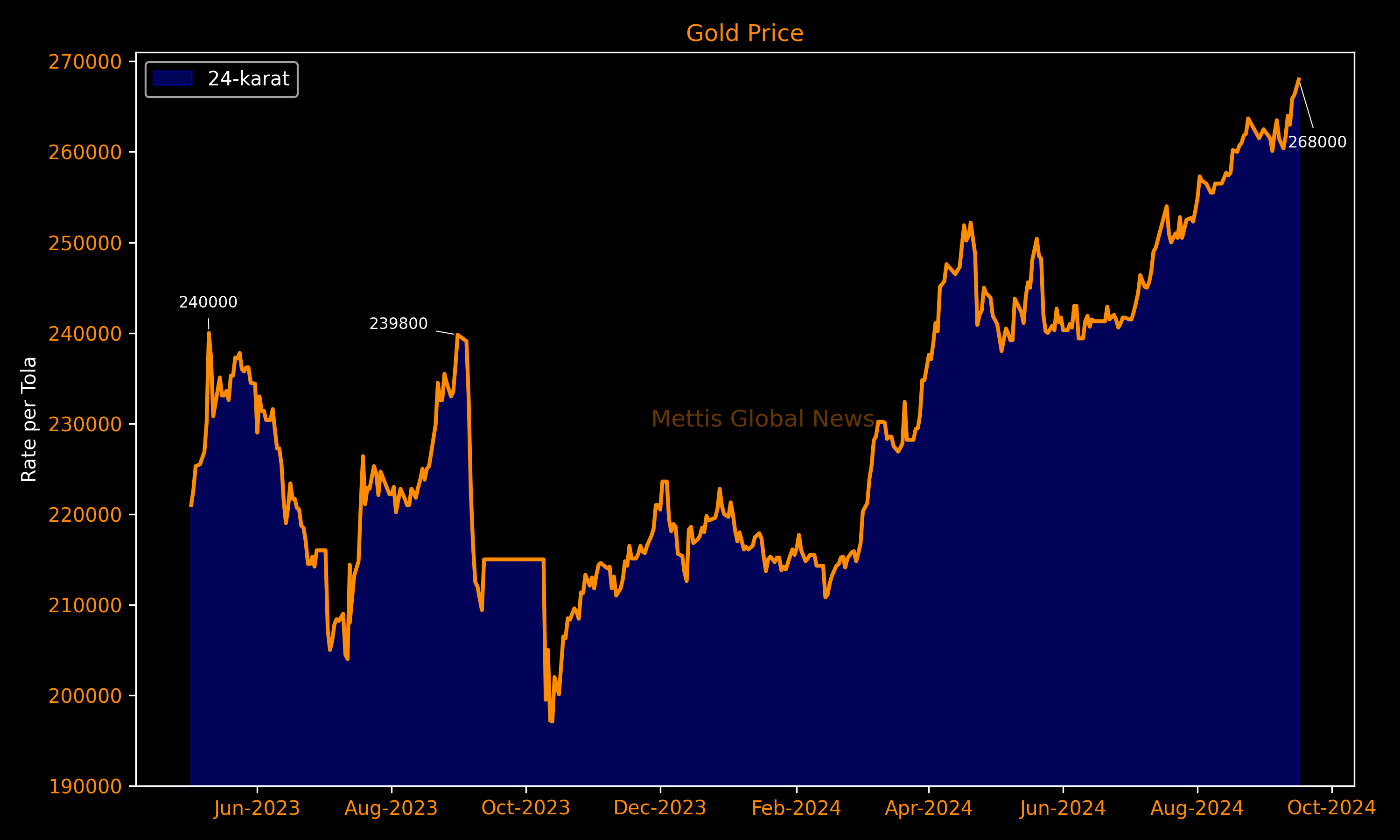 | PKR (24-karat per tola) | Sep 16, 2024 | Sep 14, 2024 | DoD | 1 Month | FYTD | CYTD |