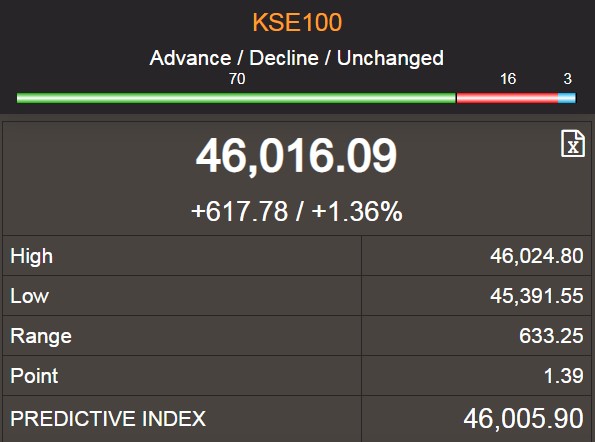 KSE-100 rally continues, crosses 46,000 milestone after 600pts jump