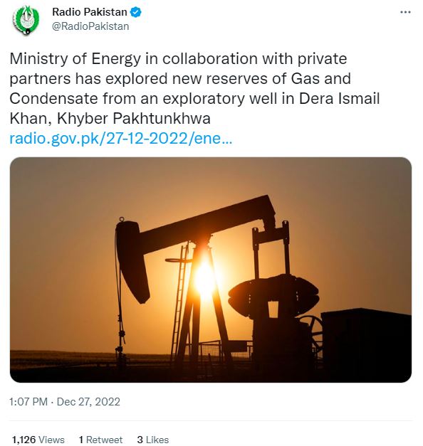 December 27, 2022: Exploration and Production (E&P) companies, under a joint venture, have discovered oil and gas reserves at 92 Kot Palak-1 well in Baska North Block located in Dera Ismail Khan district of Khyber Pakhtunkhwa, the Petroleum Division (PD) announced on its official twitter handle on Tuesday.