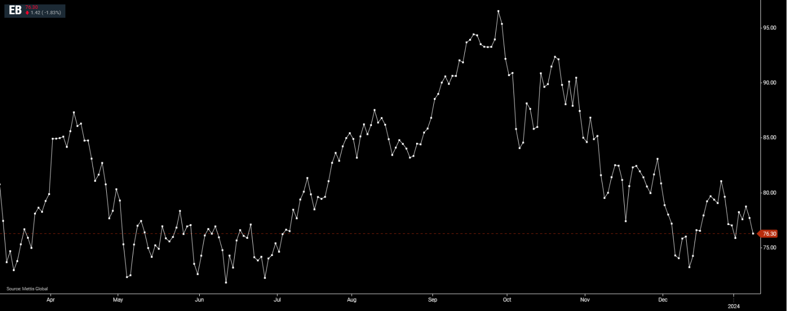January 09, 2024 (MLN): Global oil prices remained flat on Tuesday after witnessing a major drop in the previous session as markets now weighed the Middle East conflict against demand worries and rising OPEC supply.