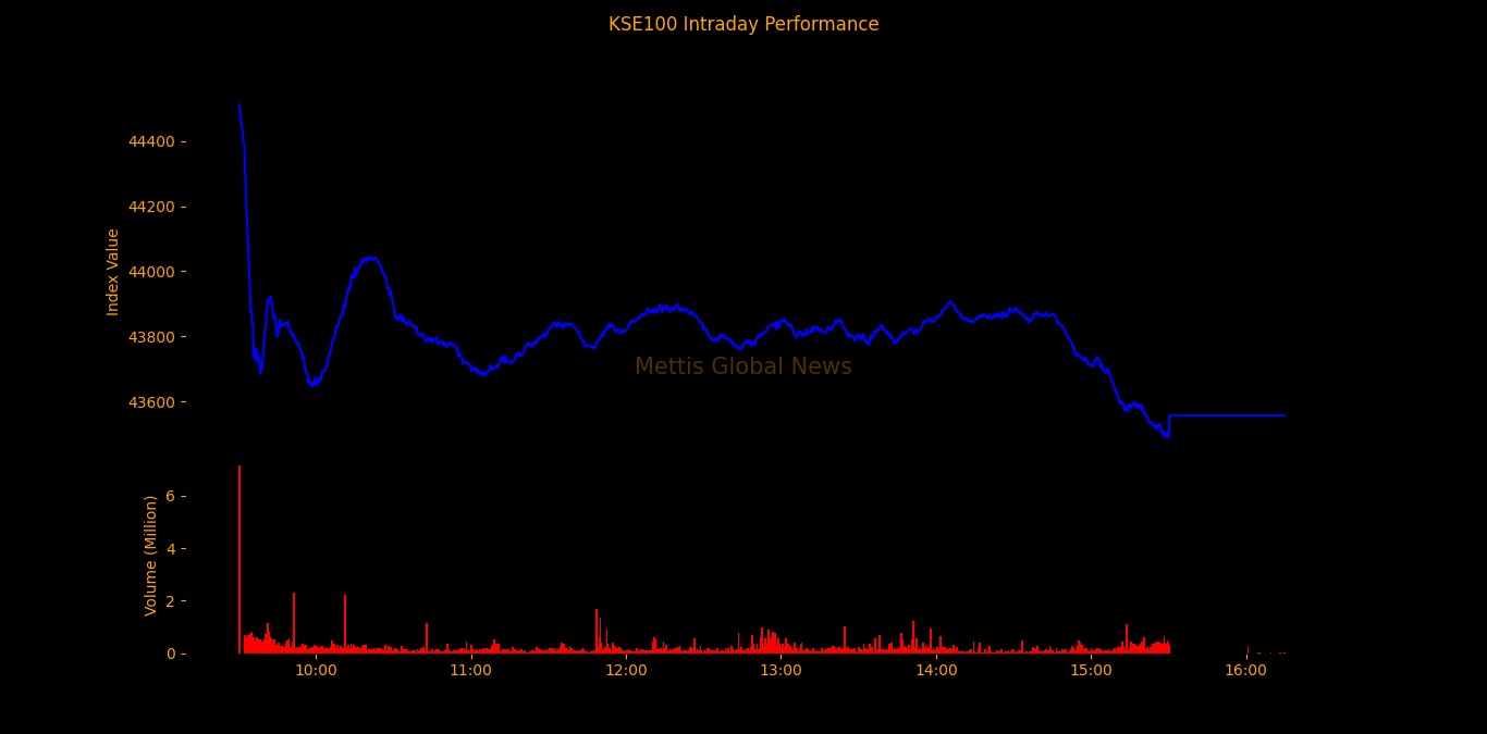Companies dragging the index lower were ENGRO with 64.18, EFERT at 59.52, LUCK at 44.16, POL at 41.68 and HBL with 38.07 points.
