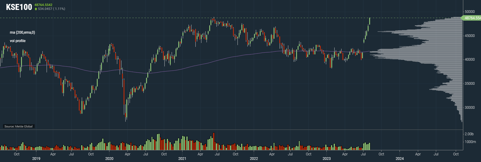 This was the highest closing in six years, since June 09, 2017, when the index closed at 49,527pts.