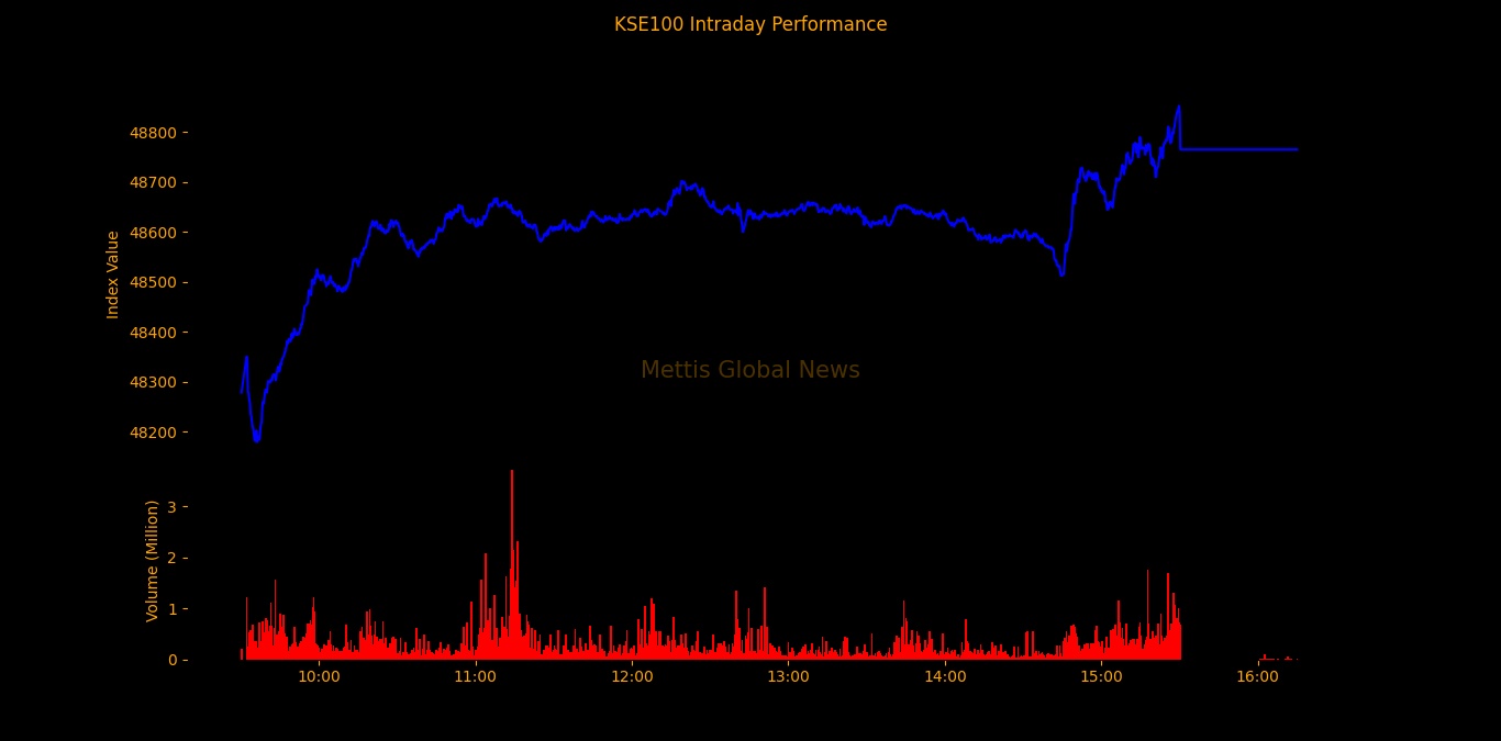 The index traded in a range of 673.17 points showing an intraday high of 48,852.05 and a low of 48,178.88.