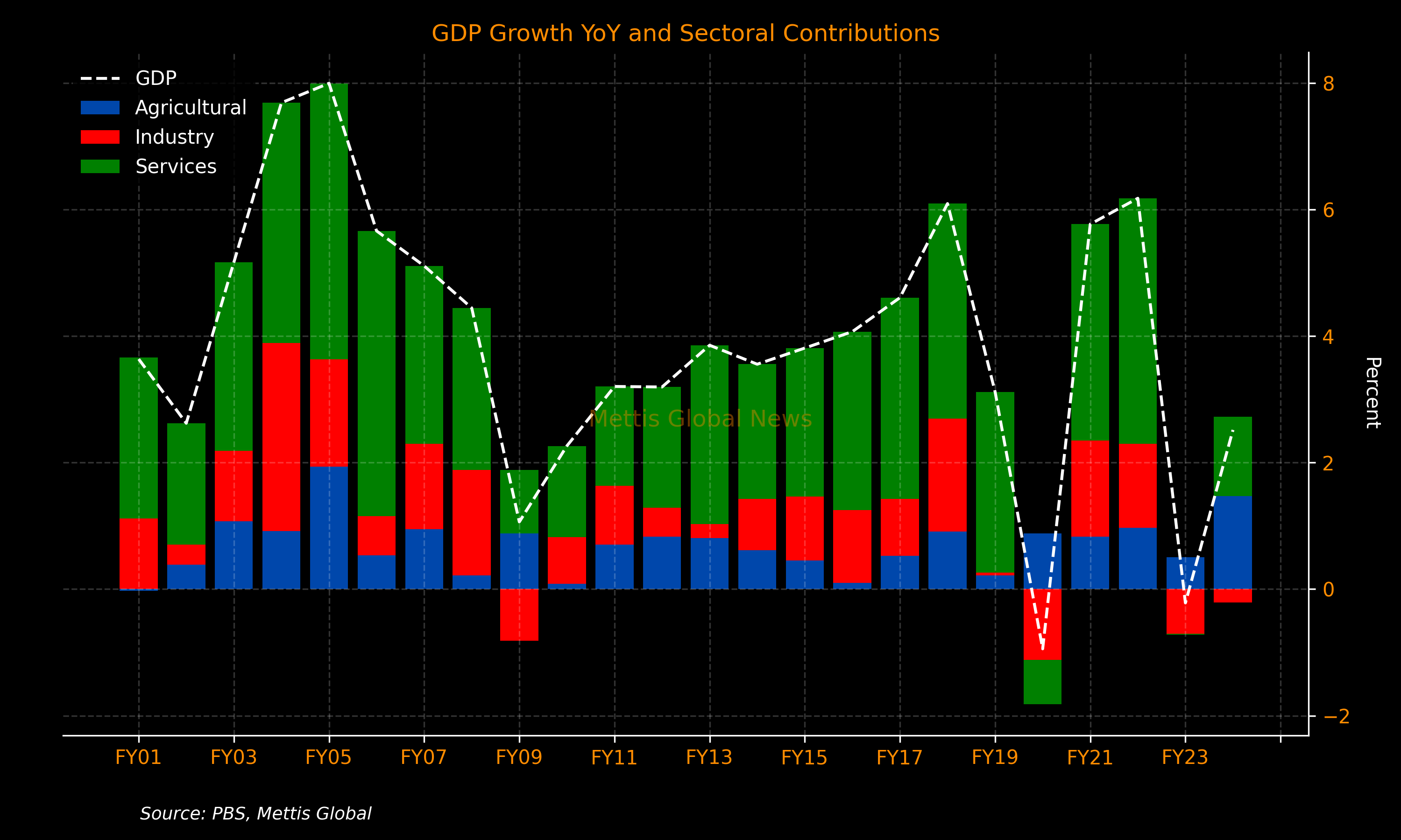 Meanwhile, economic growth remains moderate. Although Gross Domestic Product (GDP) grew 2.5% year-on-year in FY24 following a contraction last year, growth is less than half its long-run average.